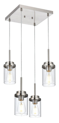 Melucee Brushed Nickel 4-Light Pendant Chandelier With Clear Glass Shade For Dining Room