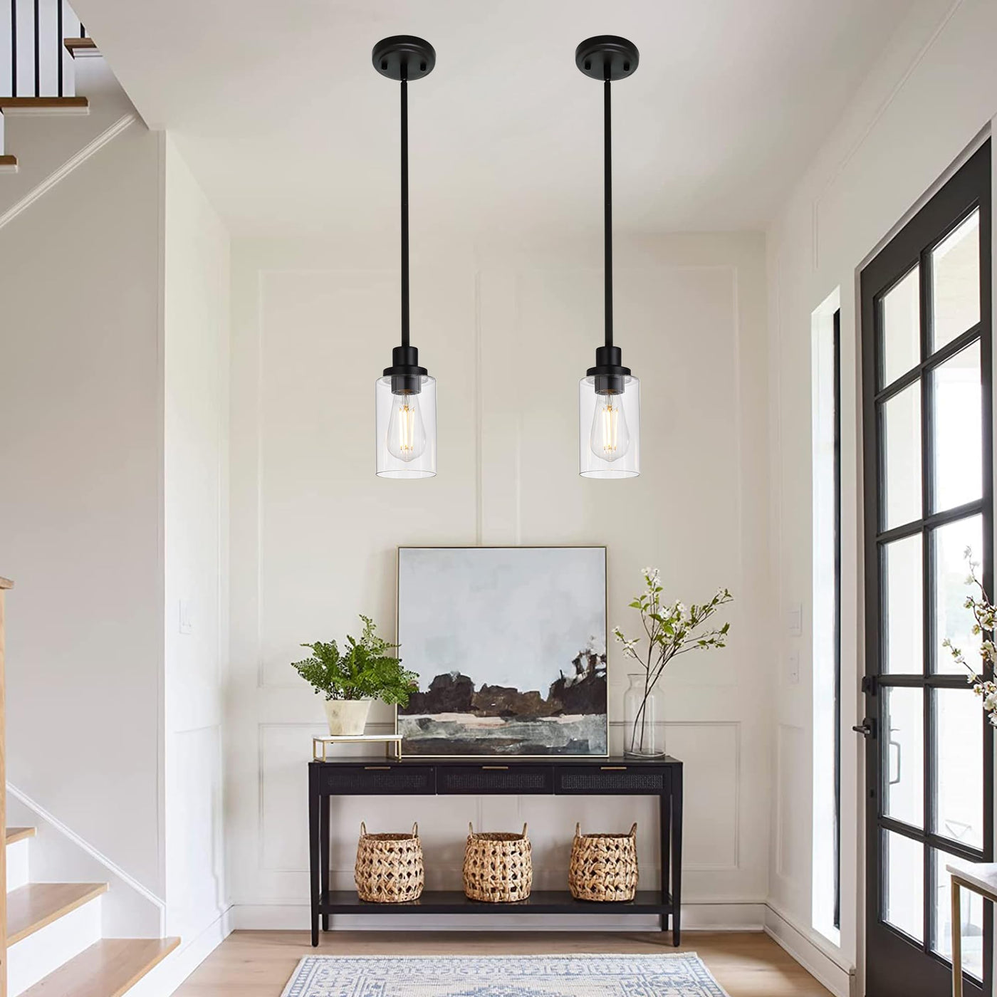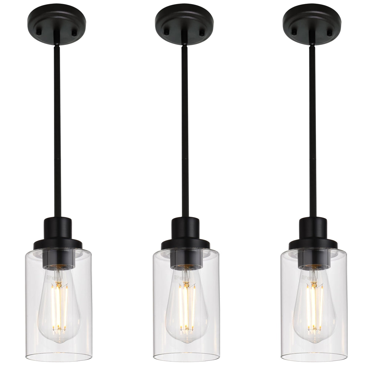Melucee Kitchen Island Pendant Lighting 3 Pack Adjustable Black Hanging Ceiling Lamp With Clear Glass Shade For Bar Dining Room