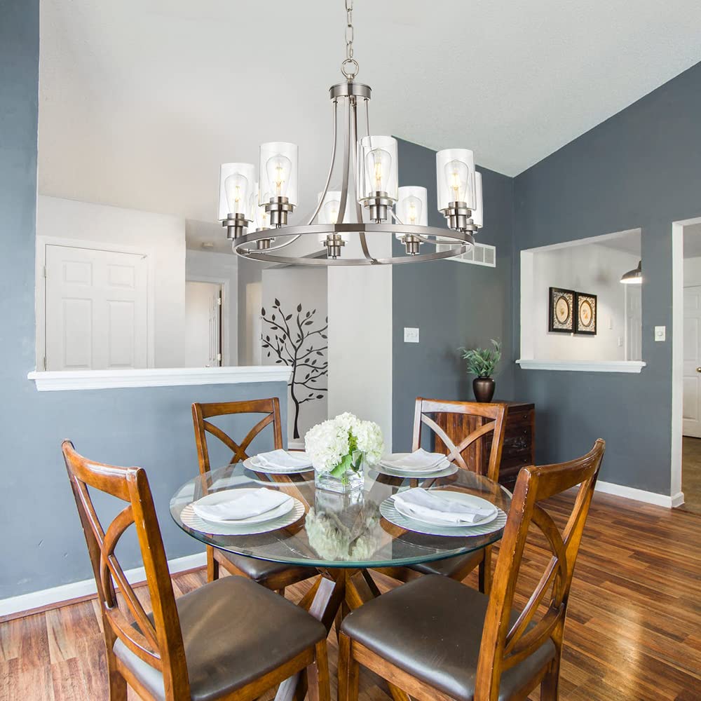 MELUCEE Modern Chandelier Brushed Nickel Finish 8 Lights, Dining Room Lighting Fixtures Hanging Industrial Pendant Lighting for Kitchen Island Foyer Restaurant