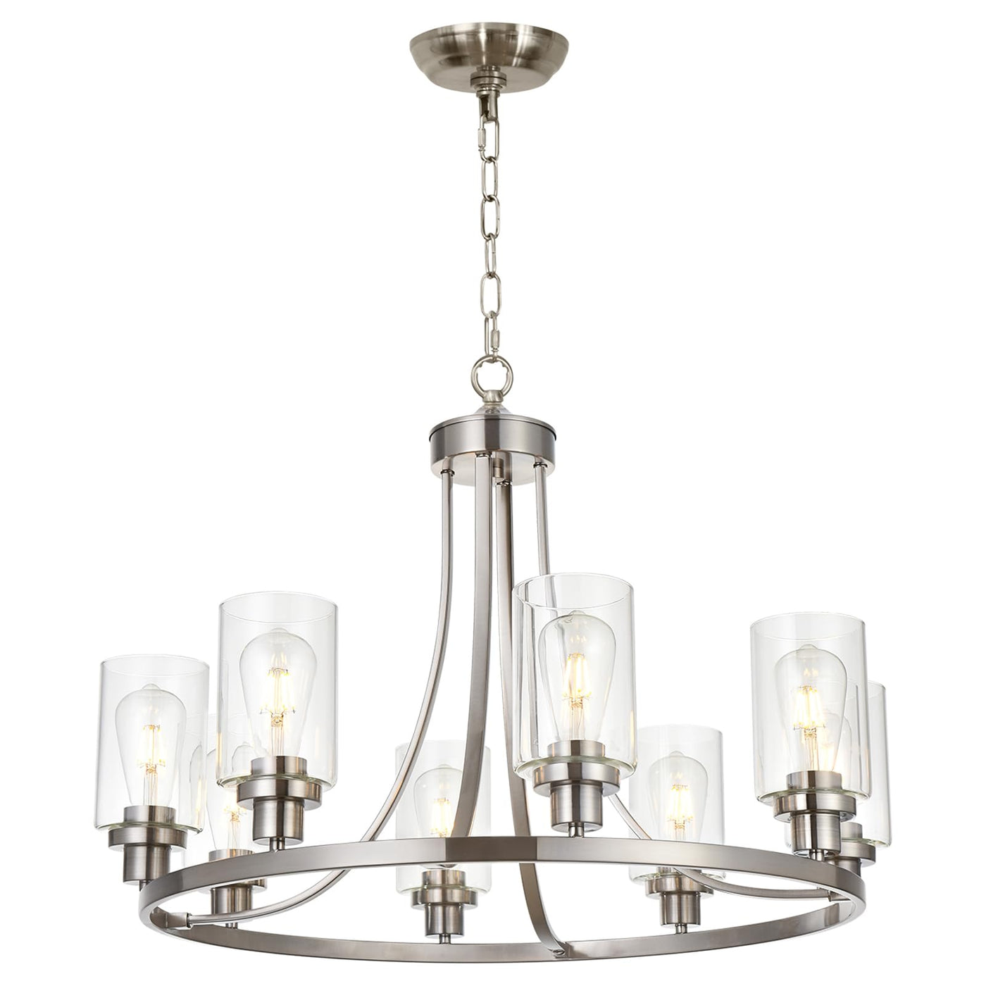 MELUCEE Modern Chandelier Brushed Nickel Finish 8 Lights, Dining Room Lighting Fixtures Hanging Industrial Pendant Lighting for
