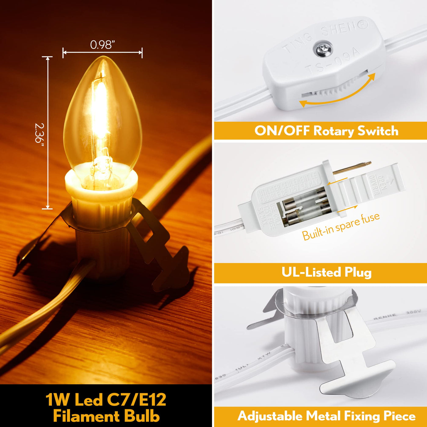 - **Safety and Reliability**: Each plug is equipped with two built-in fuses, providing an extra layer of protection for your LED bulbs. The easy-access fuse compartment allows for quick replacement, ensuring your lights stay functional throughout the season.