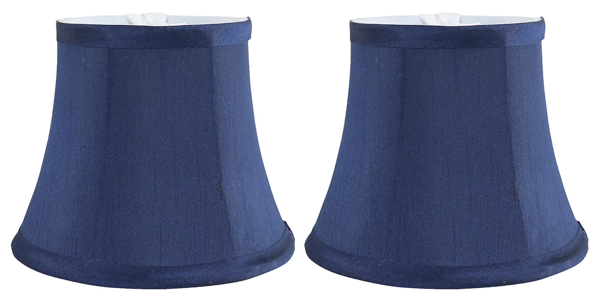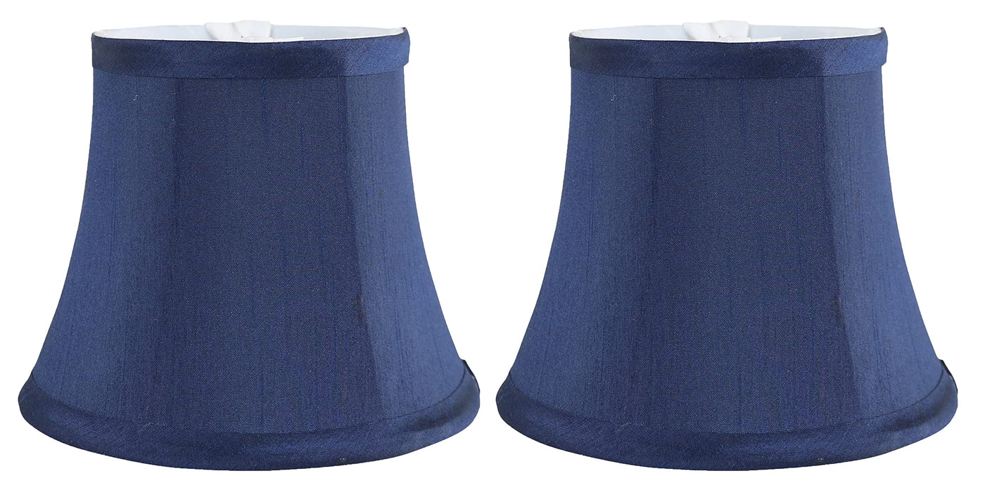 Meriville Blue Faux Silk Chandelier Lamp Shades, Set Of 2, Softback Bell Shape, Clip-On Fitter For Candelabra Bulbs, 4 X 6 X
