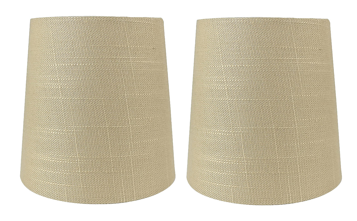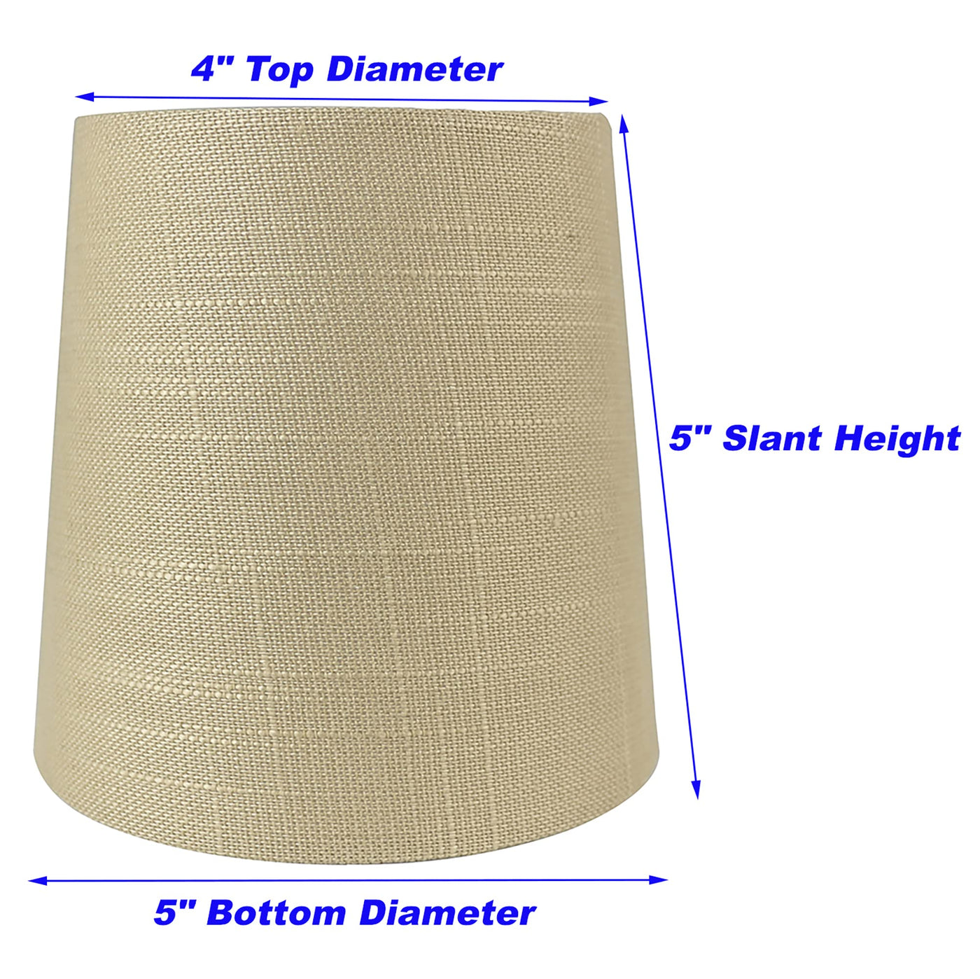 Shades Dimensions: 4 Top Diameter, 5 Bottom Diameter, And 5 Height. Fabric: Linen. Hardback Fitter: Clip-On Fitter Designed To Fit Teardrop Or Torpedo Candelabra Bulbs. Not For Standard Regular Light Bulbs. Suggested Maximum Wattage: 40 Watts.