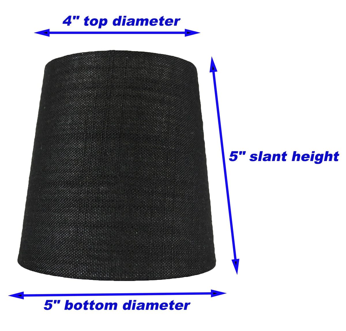 SHADES DIMENSIONS: 4 top diameter, 5 bottom diameter, and 5 height. FABRIC: Linen. Hardback FITTER: Clip-on fitter designed to fit teardrop or torpedo candelabra bulbs. NOT for standard regular light bulbs. SUGGESTED MAXIMUM WATTAGE: 40 watts.