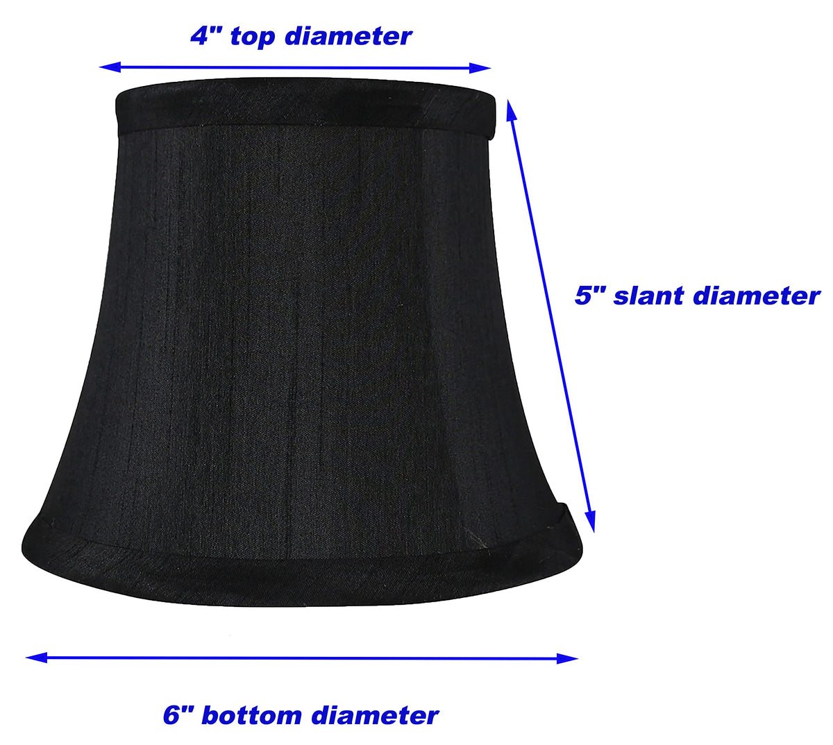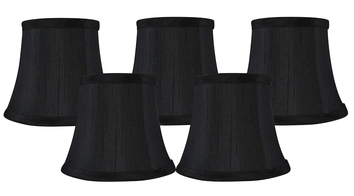 Meriville Set Of 5 Black Faux Silk Chandelier Lamp Shades - Softback Bell Shape, Clip-On Fitter For Candelabra Bulbs, 4'' X 6''