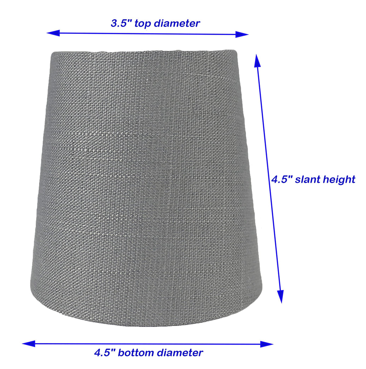 Shades Dimensions: 3.5'' Top Diameter, 4.5'' Bottom Diameter, And 4.5'' Height. Fabric: Linen. Hardback Fitter: Clip-On Fitter Designed To Fit Teardrop Or Torpedo Candelabra Bulbs. Not For Standard Regular Light Bulbs. Suggested Maximum Wattage: 40 Watts.