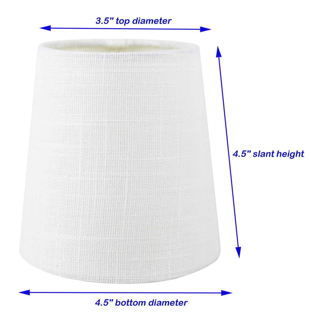 Shades Dimensions: 3.5'' Top Diameter, 4.5'' Bottom Diameter, And 4.5'' Height. Fabric: Linen. Hardback Fitter: Clip-On Fitter Designed To Fit Teardrop Or Torpedo Candelabra Bulbs. Not For Standard Regular Light Bulbs. Suggested Maximum Wattage: 40 Watts.