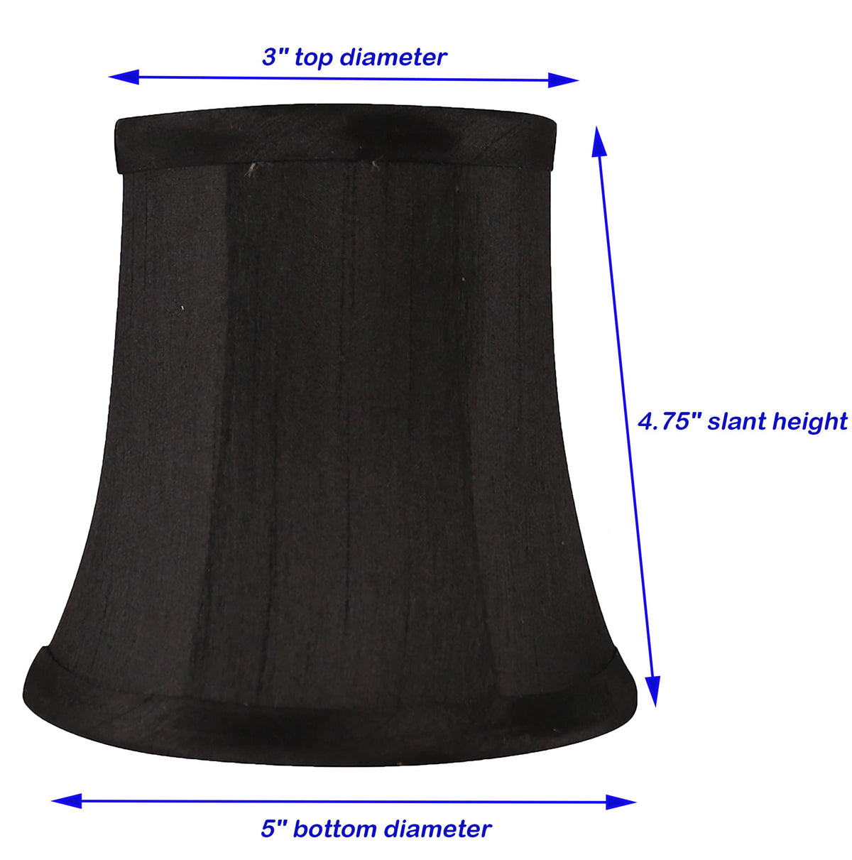 SHADES DIMENSIONS: 3.5" top diameter, 5" bottom diameter, and 4.75" height. FABRIC: Faux silk. Softback FITTER: Clip-on fitter designed to fit teardrop or torpedo candelabra bulbs. NOT for standard regular light bulbs. SUGGESTED MAXIMUM WATTAGE: 40 watts.