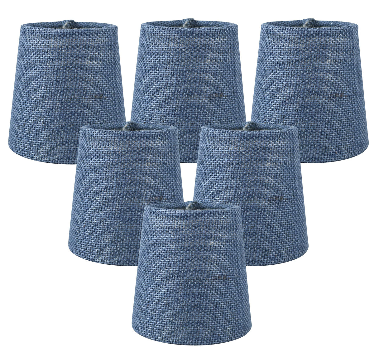 Meriville Set Of 6 Denim Blue Burlap Clip On Chandelier Lamp Shades, 3.5-Inch By 4.5-Inch By 4.5-Inch