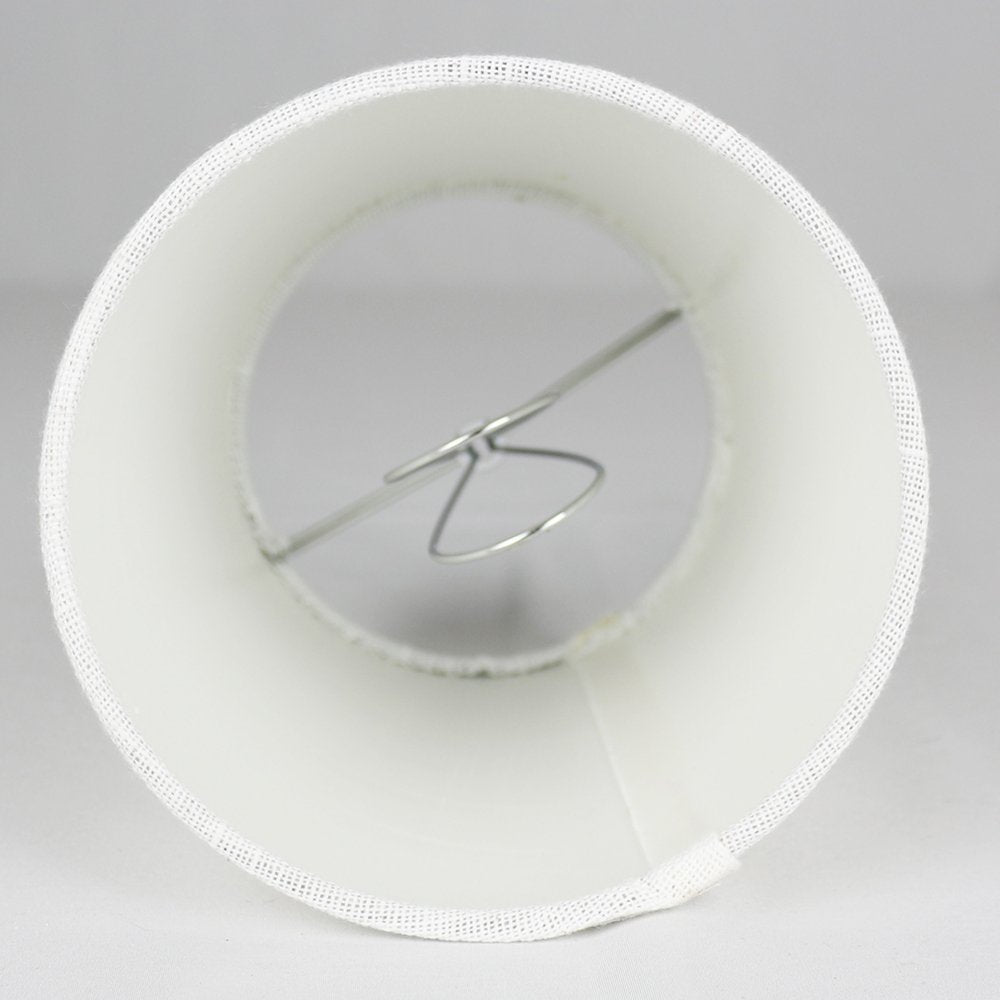 FITTER: Clip-on fitter designed to fit teardrop or torpedo candelabra bulbs. NOT for standard regular light bulbs. SHADES DIMENSIONS: 4'' top diameter, 5'' bottom diameter, and 5'' height. FABRIC: Linen. Hardback. SUGGESTED MAXIMUM WATTAGE: 40 watts.