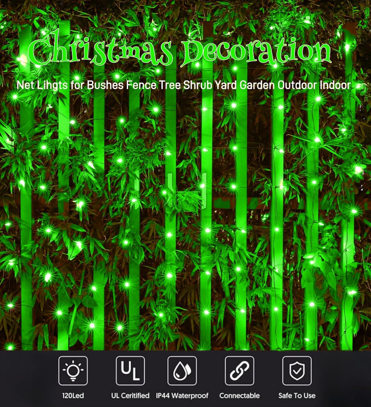 Widely Use-Our Christmas Net Lights Feature 120 Bright Mini Led Bulbs With Green Wire, Size Is 4Ft*6Ft With 9.8Ft Lead Cable. The Christmas Bushes Net Lights Are Easy To Cover Bushes, Grassland, Treetops, Walls, Hedges, Fences, Railings, Windows, Balcony, Roof Guardrail,Stairs,Add A Relaxed And Romantic Ambiance To Your Xmas And Festival.