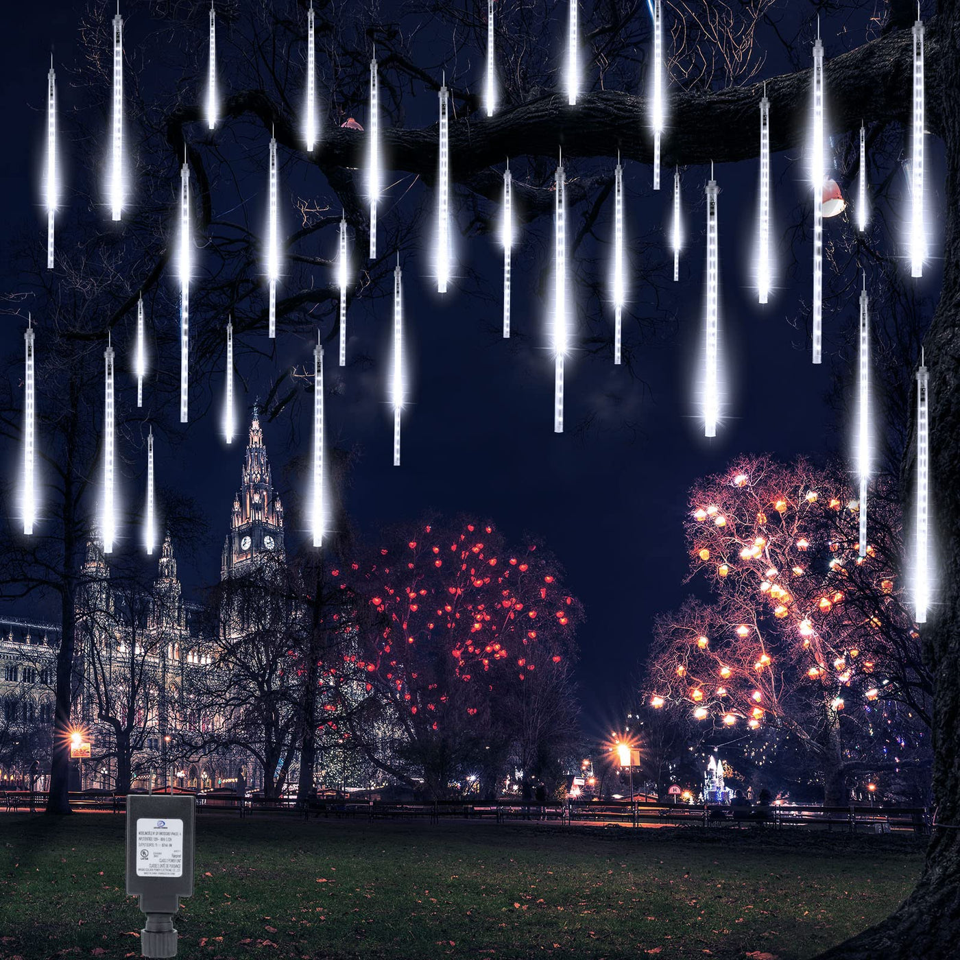 Q: How do I install the Meteor Shower Lights for best results?A: To install the Meteor Shower Lights, hang them from trees, eaves, or high places using the 13.1 feet long leading wire. Ensure that each tube is spaced 1.64 feet apart for an optimal display. The lights are designed to light up sequentially, mimicking a meteor shower effect, which can be enhanced by connecting multiple sets.