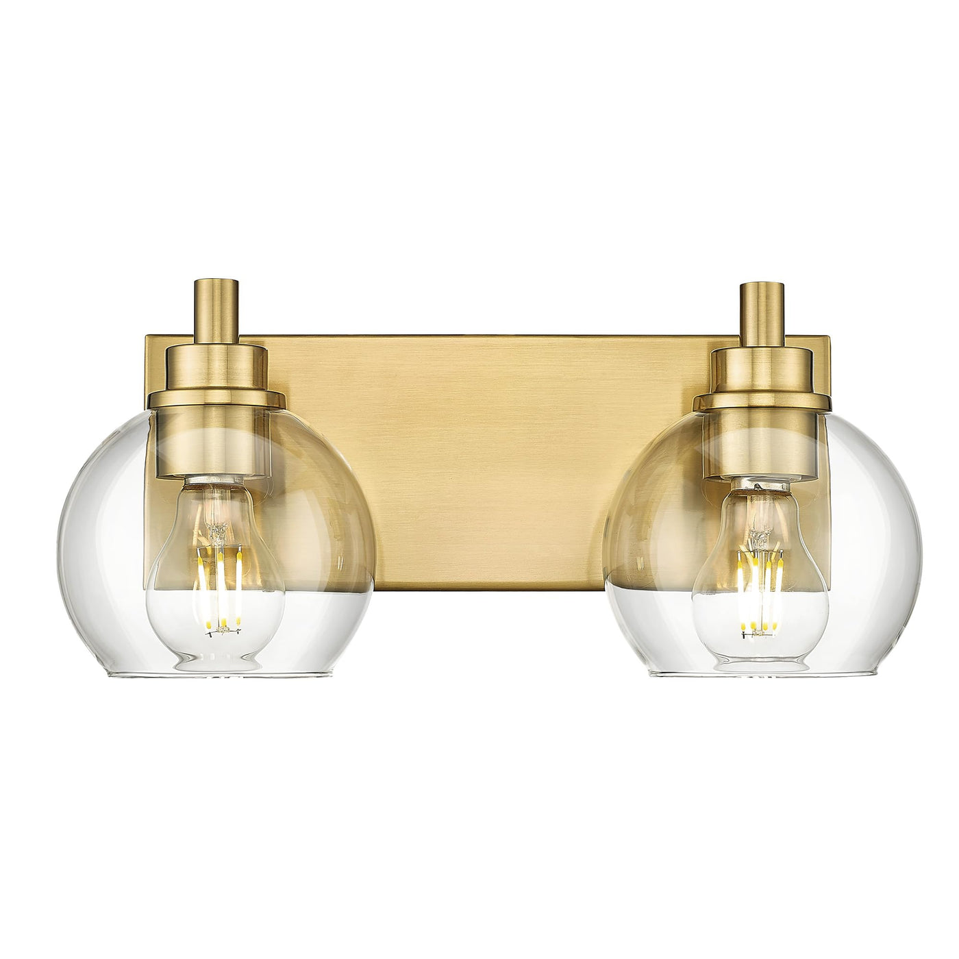 Metwet Bathroom Light Fixtures, 2 Light Brushed Gold Vanity Light, Modern Wall Sconces With Clear Glass Globe Shade, Bathroom Wa