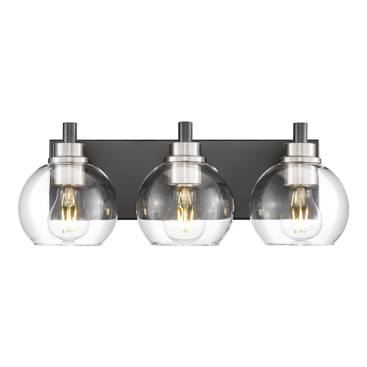Metwet Bathroom Light Fixtures, 3-Light Black And Brushed Nickel Bathroom Vanity Light, Modern Wall Sconces With Globe Clear Gla