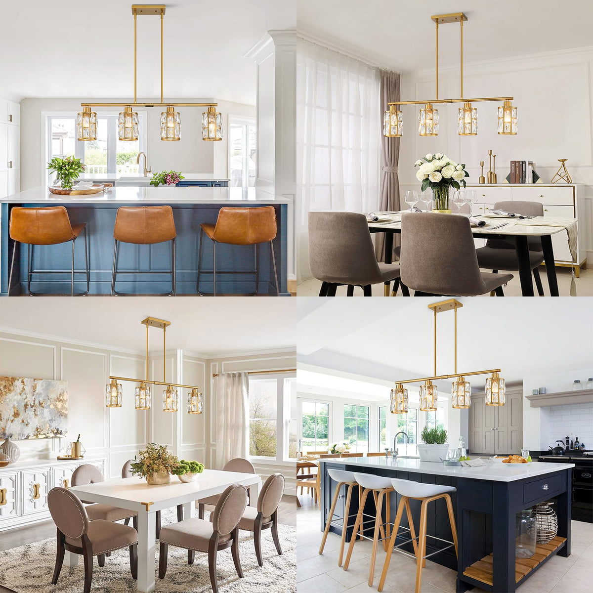 Modern Kitchen Island Lighting Fixtures, 4-Light Pendant Lighting For Dinning Room, Gold Finish
