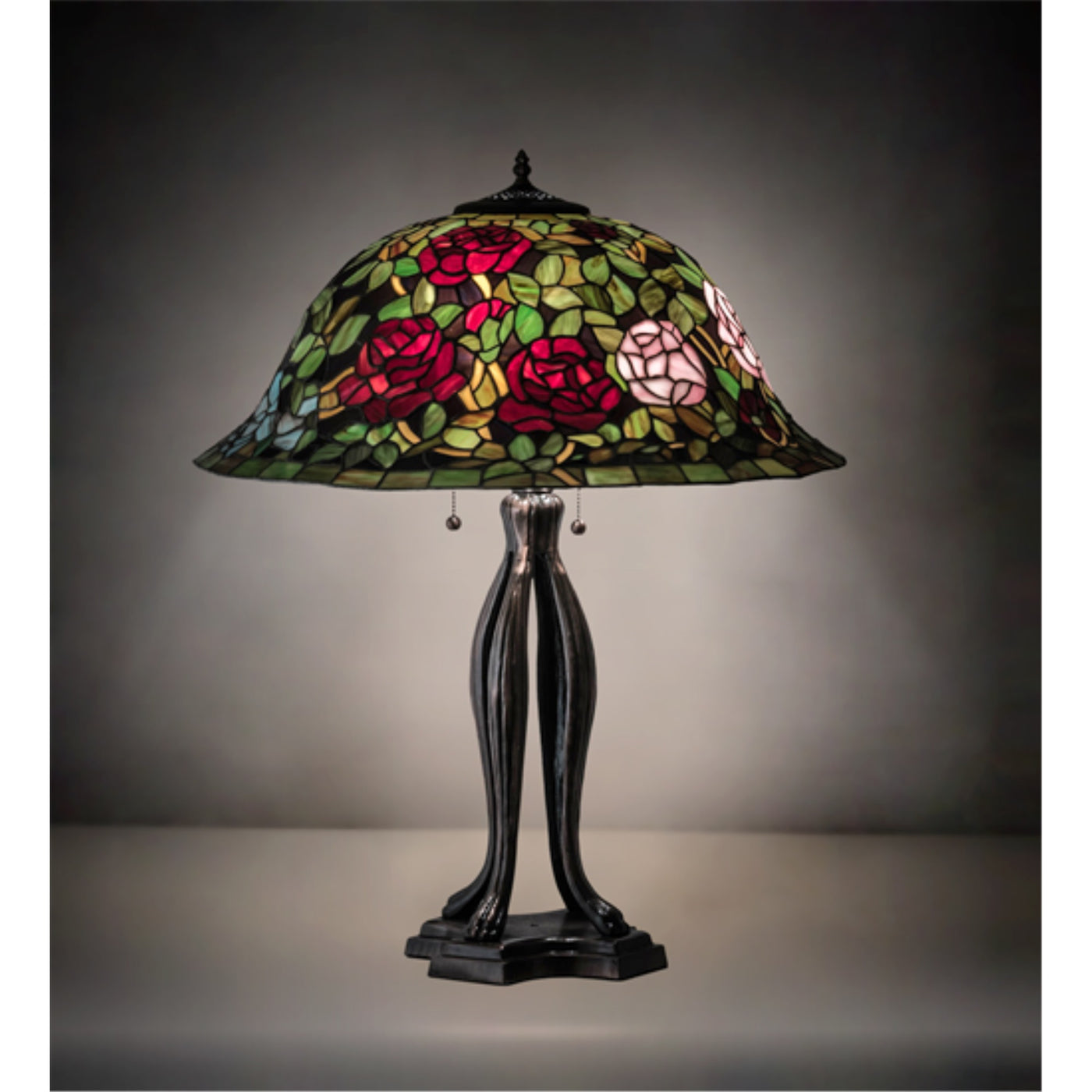 Q: How do I care for the Tiffany Rosebush Table Lamp?A: To maintain the Tiffany Rosebush Table Lamp, regularly dust it with a soft cloth and avoid using harsh cleaners that may damage the finish.