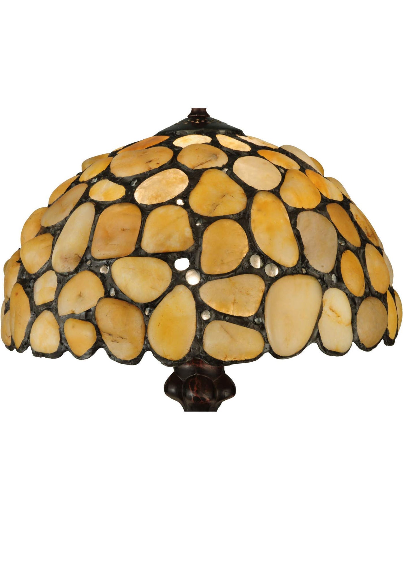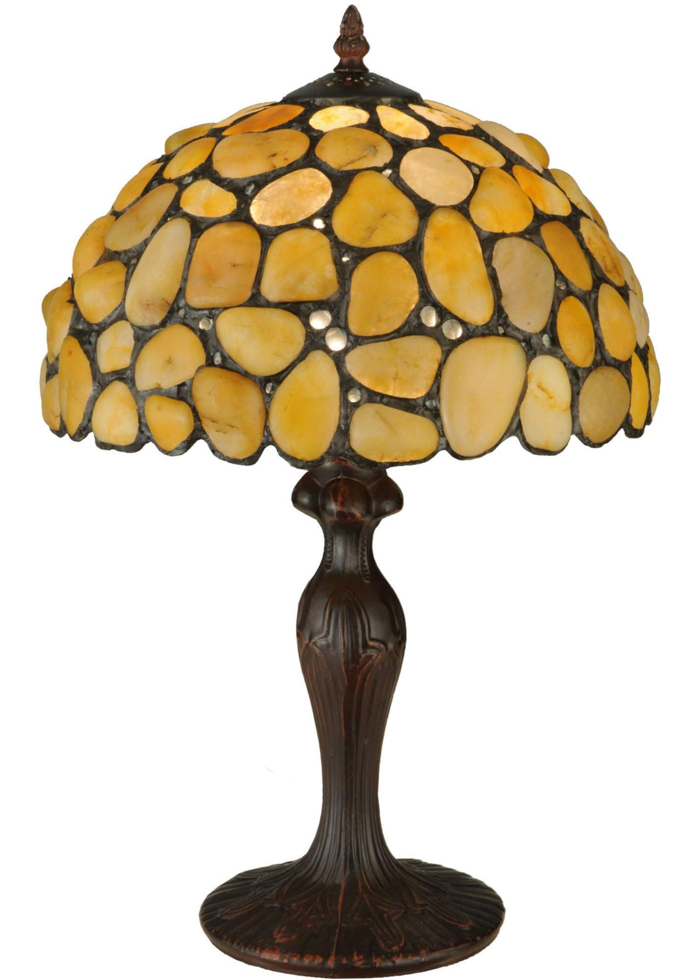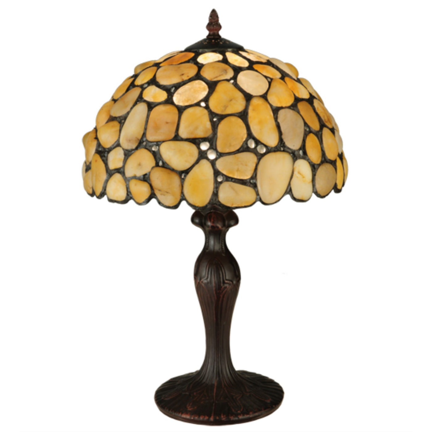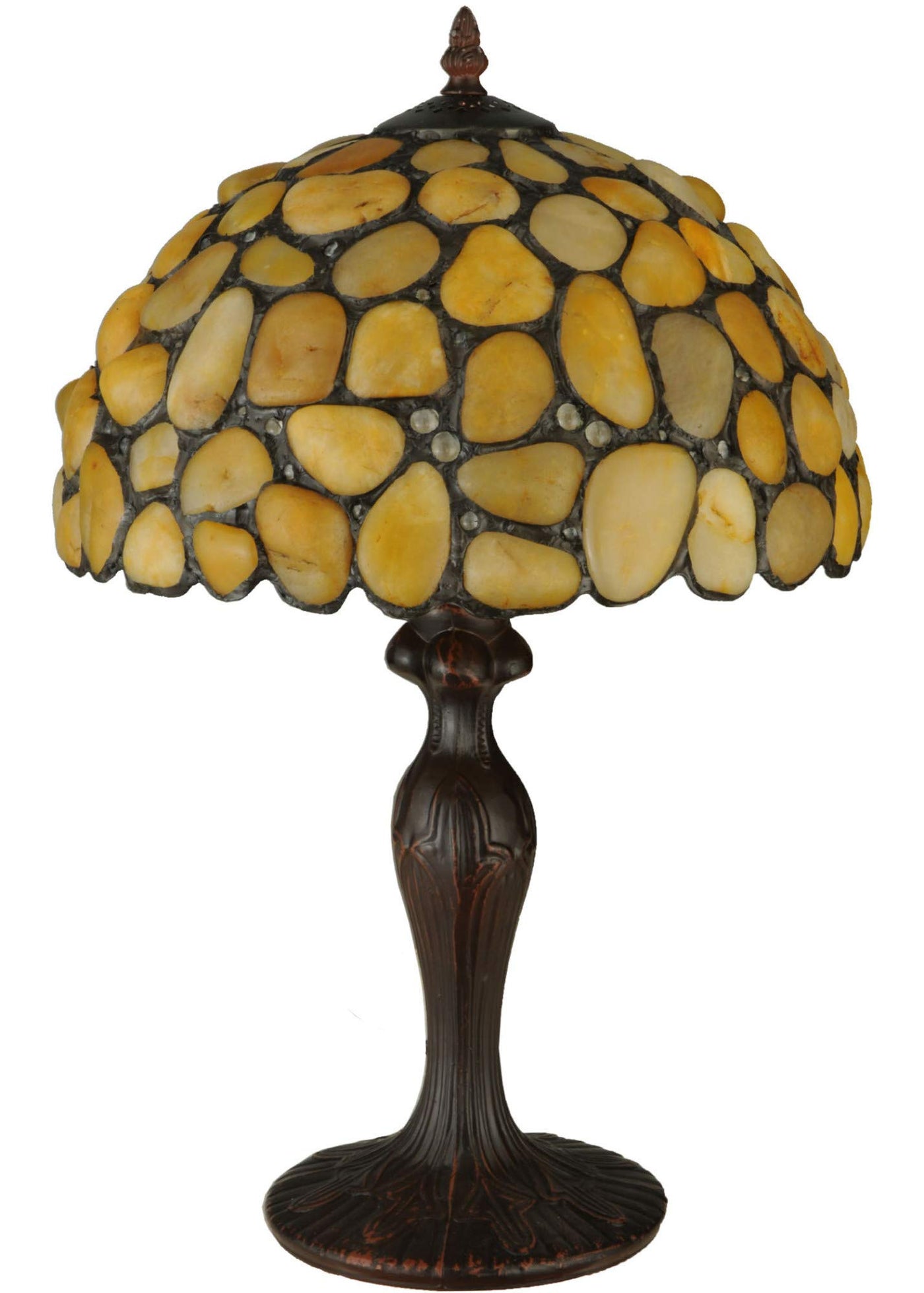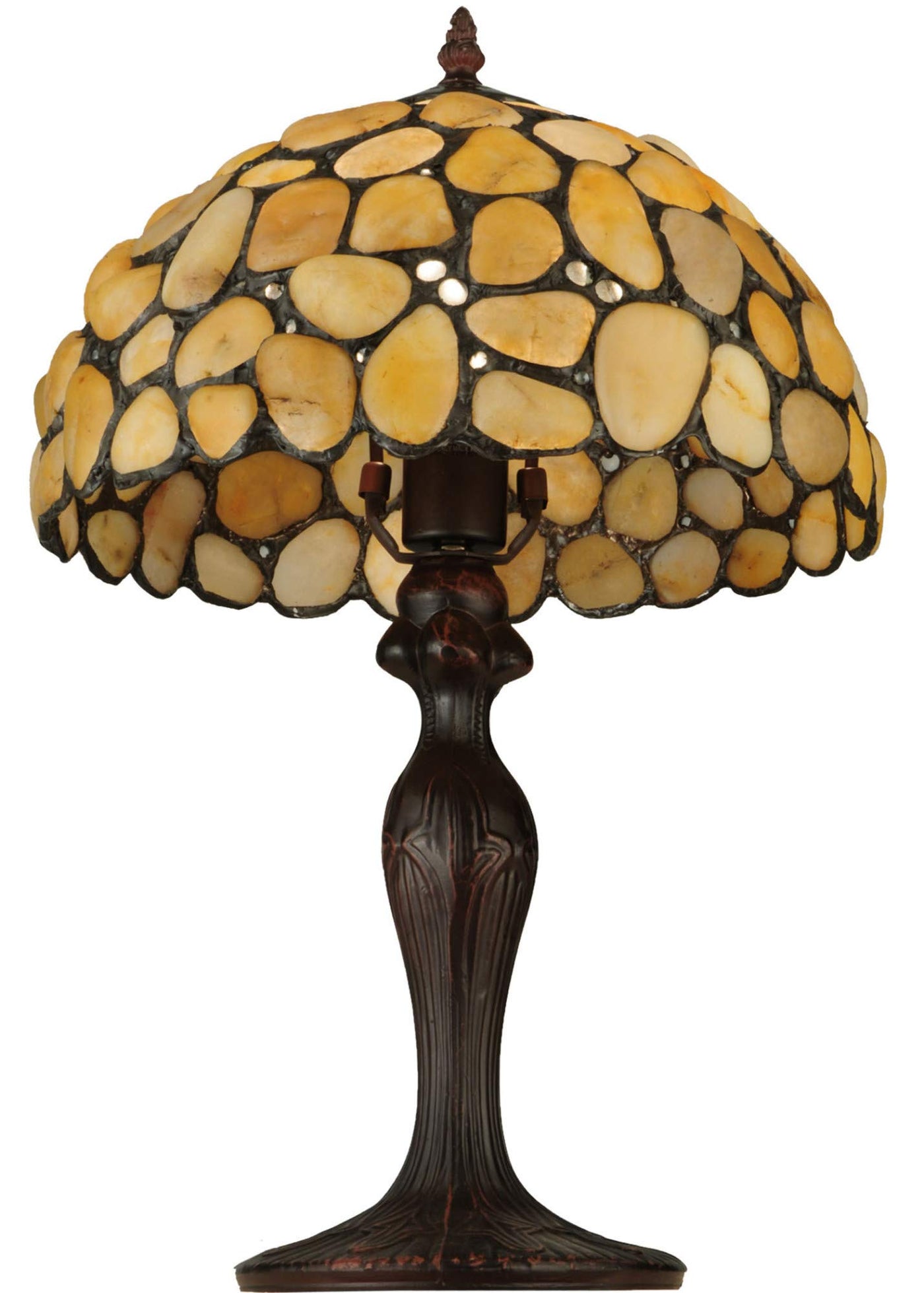 Illuminate your space with the exquisite craftsmanship of the Meyda Tiffany Agate Stone Lamp. This stunning lamp combines the natural beauty of Agate stones with the timeless elegance of Tiffany's copper foil construction, creating a unique lighting solution that enhances any décor.