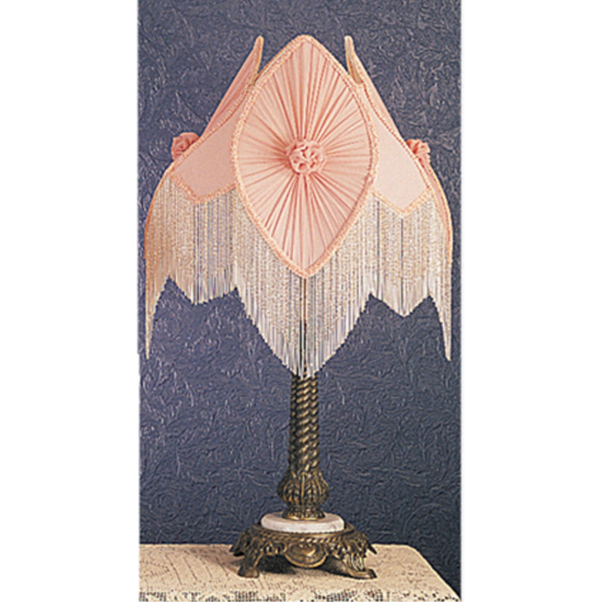 - **Elegant Design**: The lamp showcases a beautiful pink fabric fringe, adding a touch of vintage charm to your home.