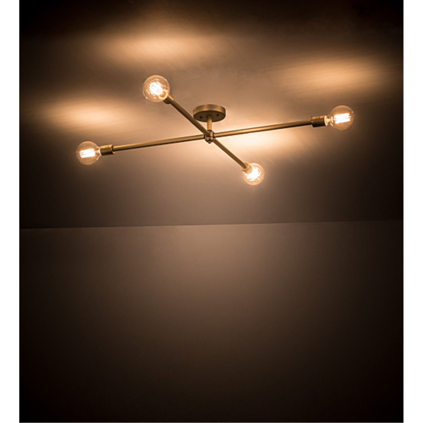 Meyda Tiffany Four Light Flushmount, Natural Brass Finish, 36 inches, Model 189039, Metal Construction