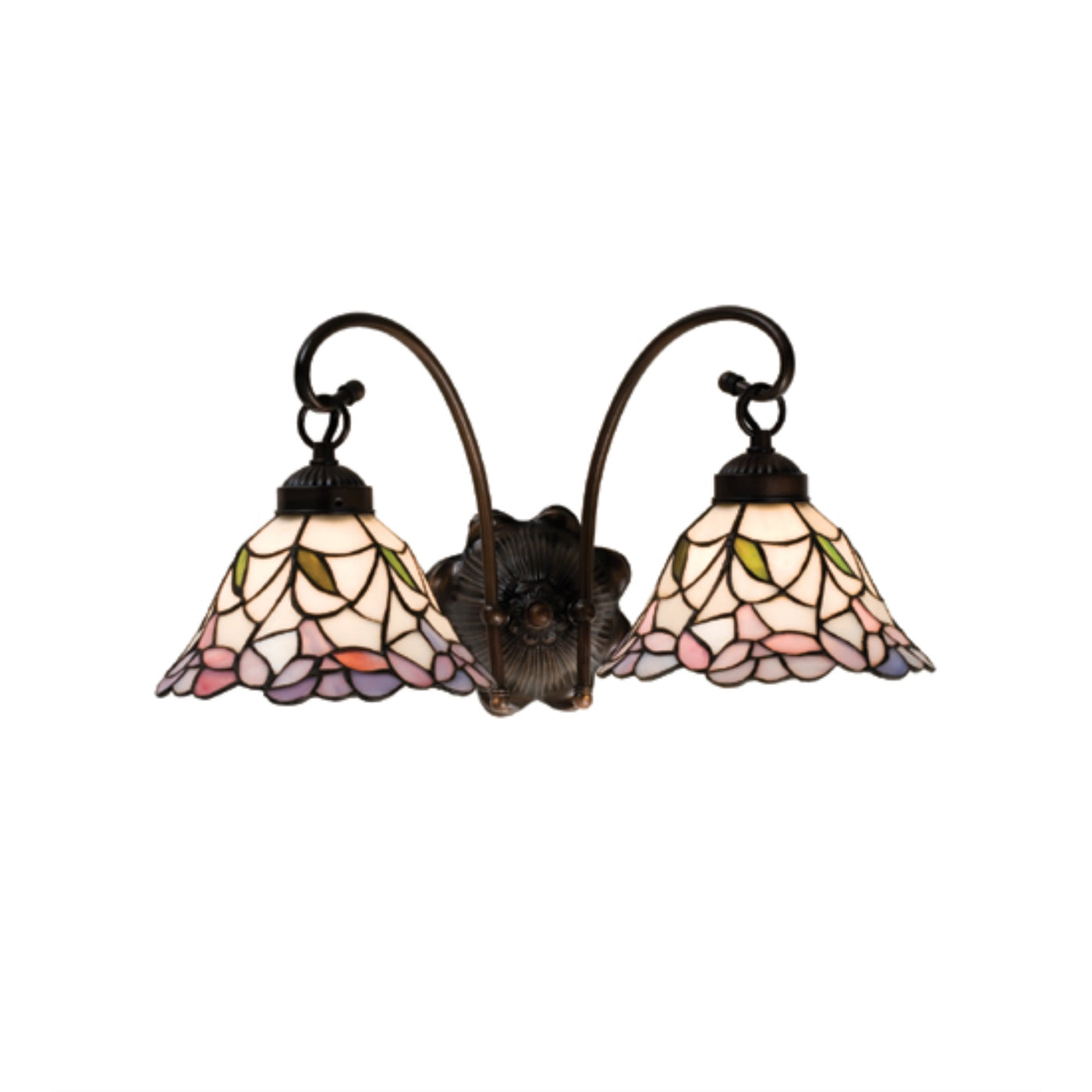 This exquisite wall sconce features a finish in Ca Pink Mahogany Bronze, creating a warm and inviting atmosphere. The use of well-made metal ensures durability and longevity, making it an excellent choice for both residential and commercial settings. The design is inspired by classic lighting styles, reflecting an artistic heritage that dates back to the early 1900s when Meyda Tiffany began its journey in decorative lighting. The sconce is designed to accommodate two light bulbs, providing ample illumination for various environments while maintaining an elegant look.