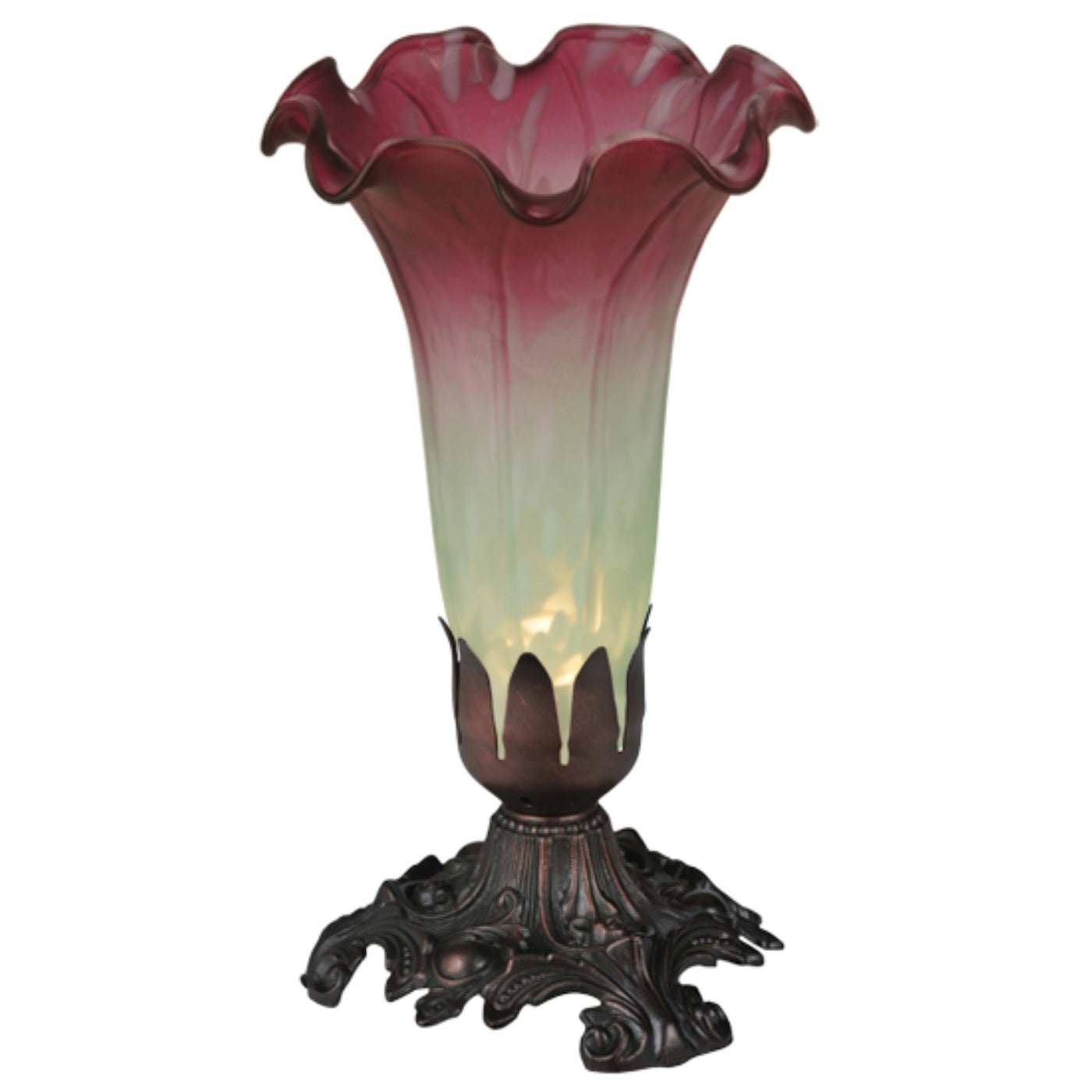 Meyda Tiffany Seafoam/Cranberry Pond Lily Accent Lamp, Mahogany Bronze, Metal