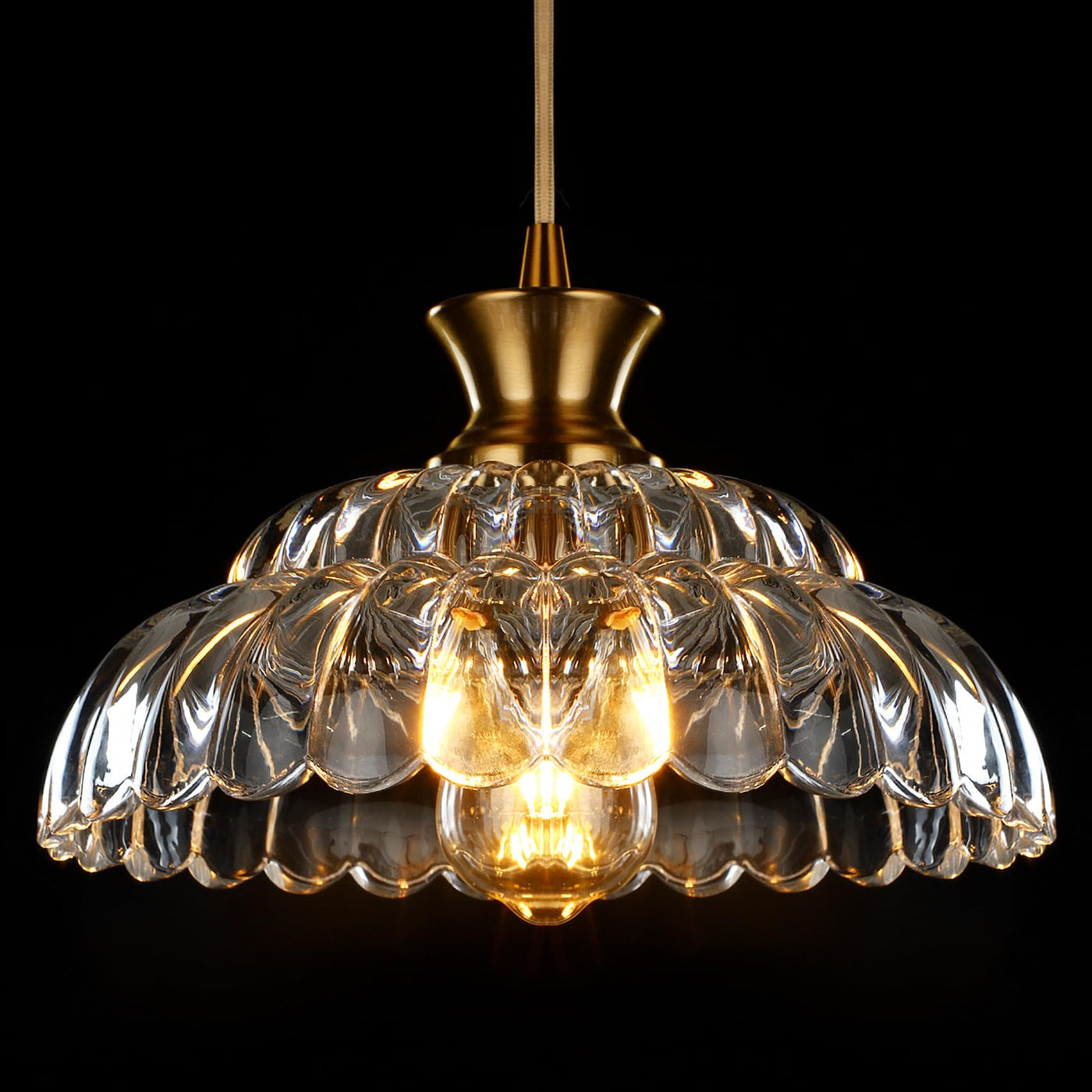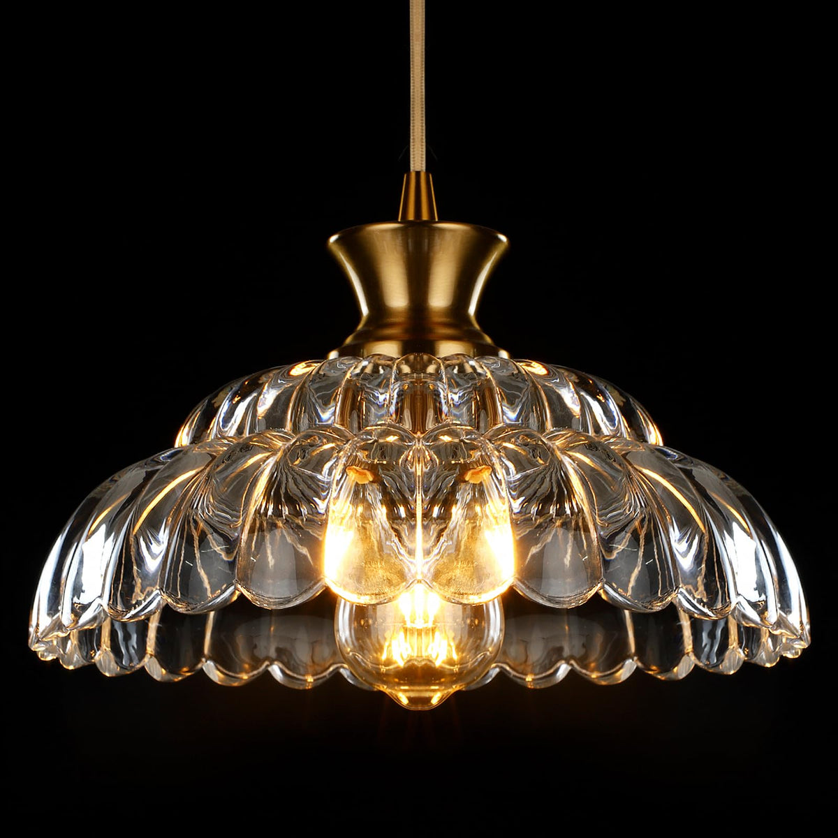 Q: What materials are used in the construction of this pendant light?A: The Mgcanyu Glass Pendant Light features a thickened glass shade and metal fittings treated with a brushed gold finish, providing a blend of durability and aesthetic appeal.