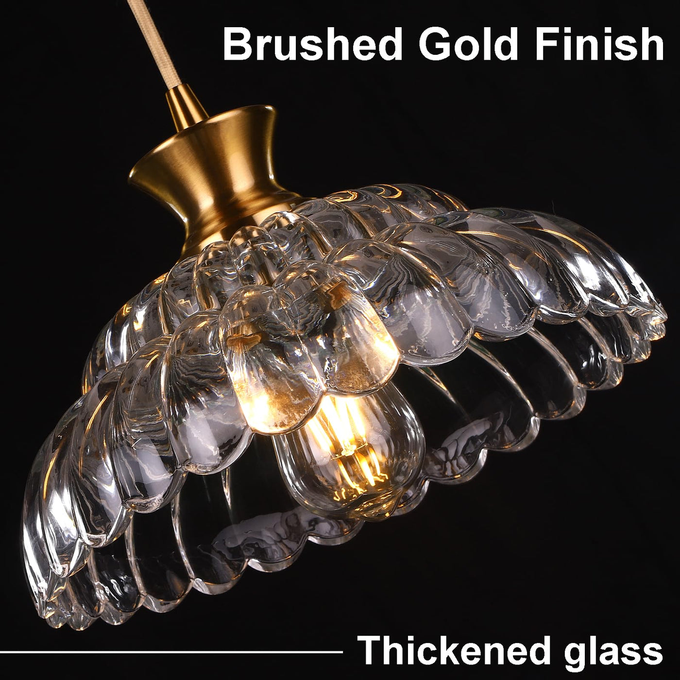Mgcanyu Glass Pendant Lights Kitchen Island, 11.8'' Vintage Lighting Glass Light Fixtures Brushed Gold Modern Glass Chandelier H