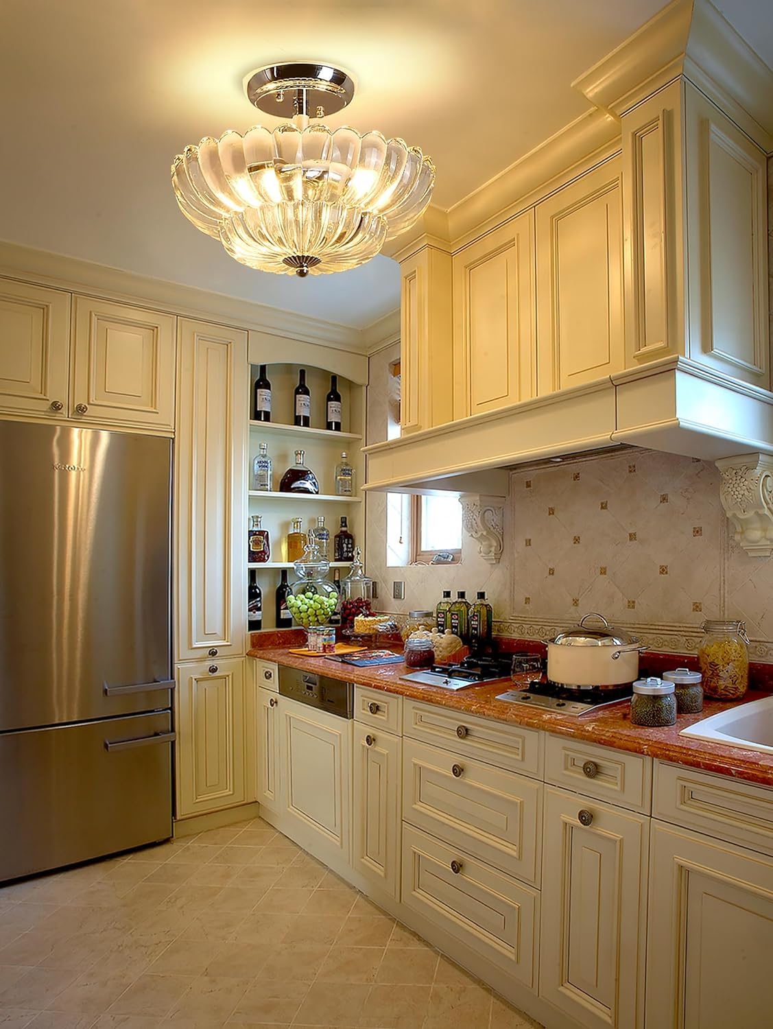 Mgcanyu Semi Flush Mount Glass Ceiling Light, 11.8In 2-Light Modern Chrome Light Fixture Ceiling Mount With Scalloped Clear Glass For Hallway Bedroom Kitchen Dining Room Entryway Foyer