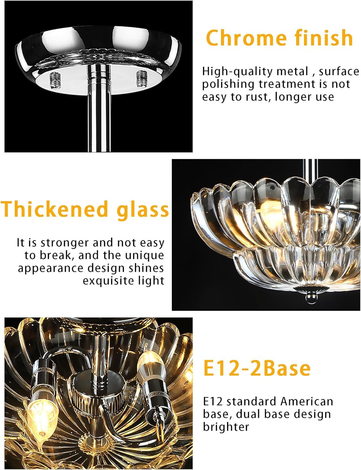 Mgcanyu Semi Flush Mount Glass Ceiling Light, 11.8In 2-Light Modern Chrome Light Fixture Ceiling Mount With Scalloped Clear Glas