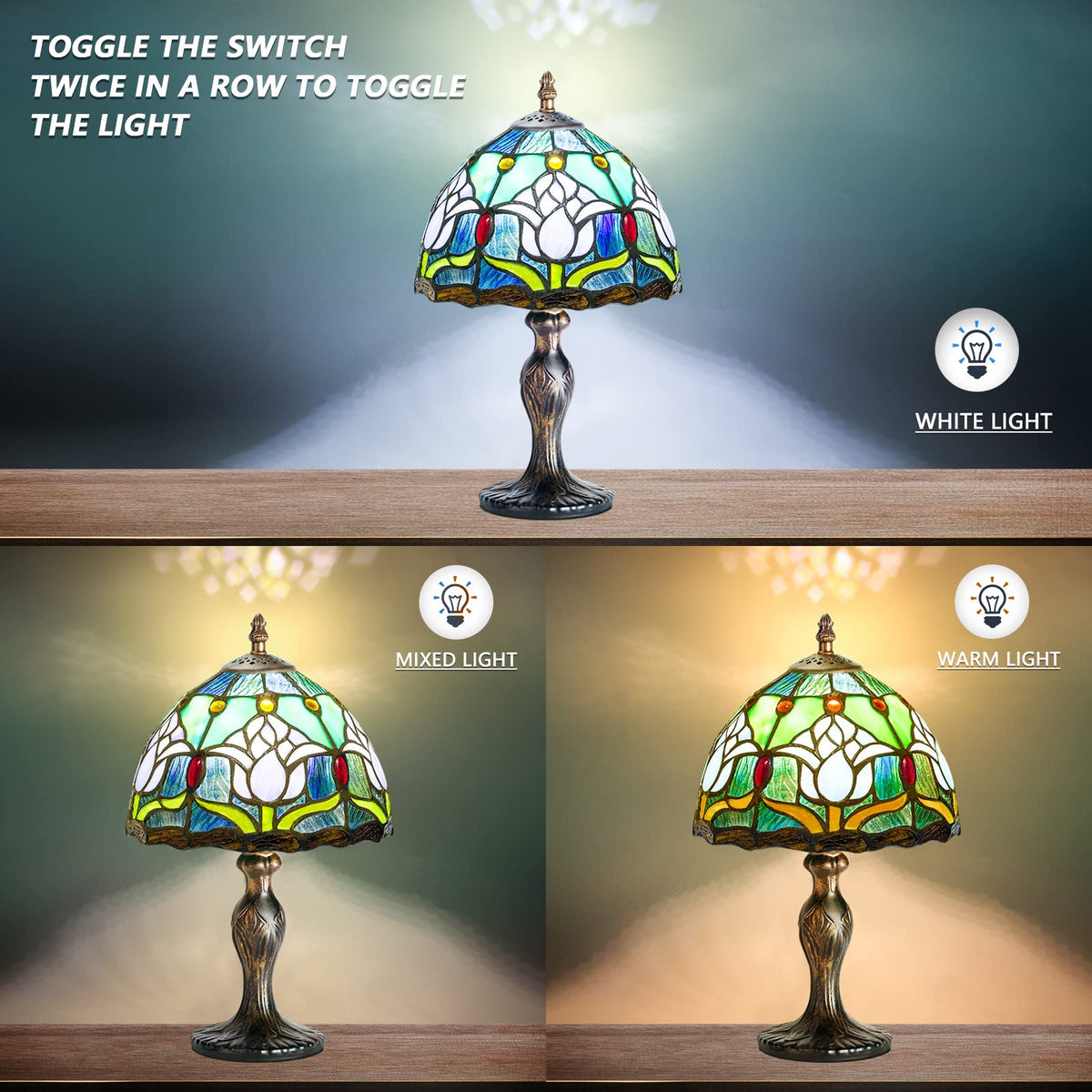 Q: What type of bulb does the MIAOKE Tiffany Table Lamp use?A: The MIAOKE Tiffany Table Lamp accommodates an E26 LED bulb with a wattage range of 4-8W for optimal warm white light illumination.