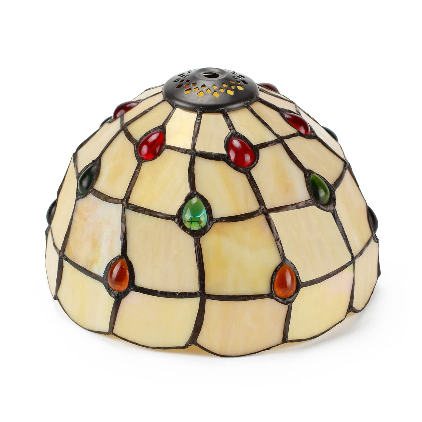 Q: How do I care for and clean the stained glass lampshade?A: To maintain the beauty of the stained glass lampshade, gently wipe it with a soft, dry cloth. Avoid harsh cleaners that may damage the glass or the finish.