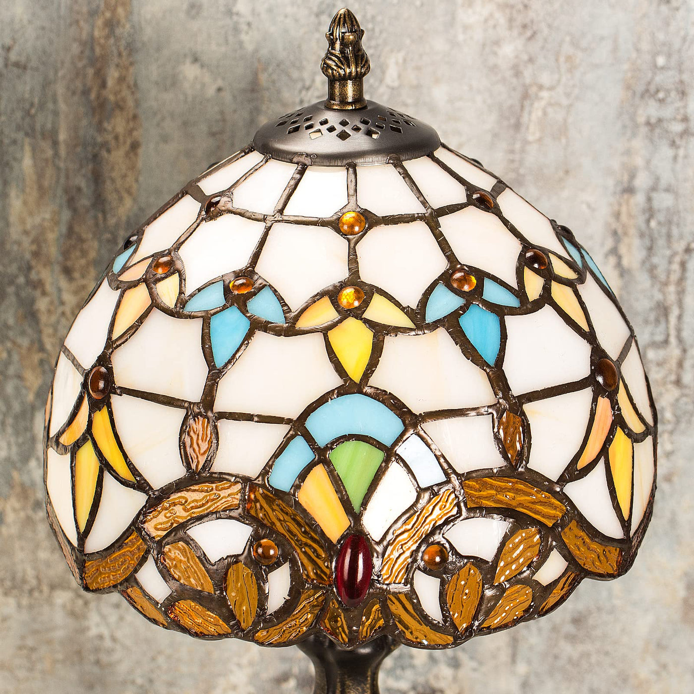 Q: What is the size of the MIAOKE Tiffany Table Lamp?A: The MIAOKE Tiffany Table Lamp measures 8 inches in width and 13 inches in height, making it an ideal size for bedside tables, desks, or bookcases.