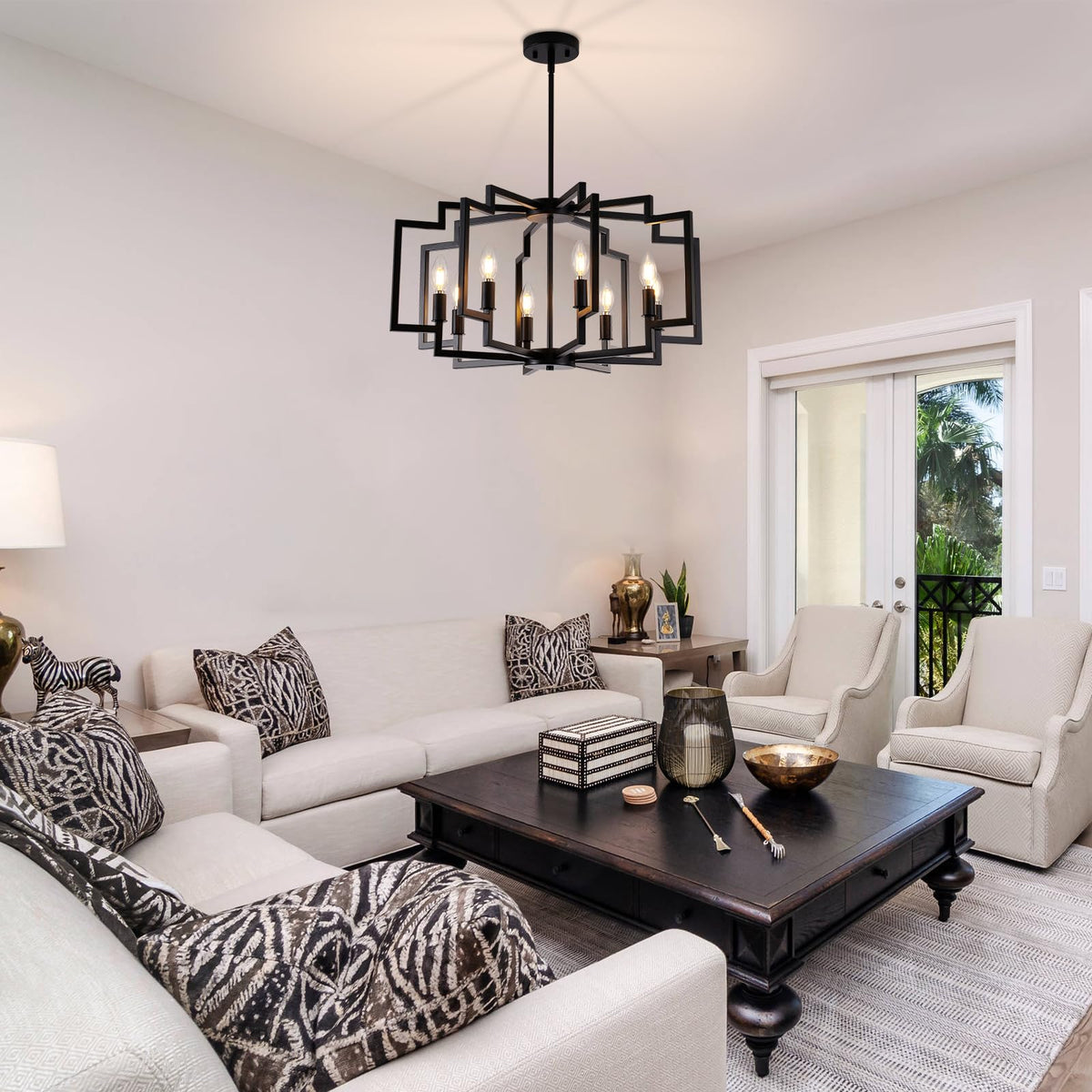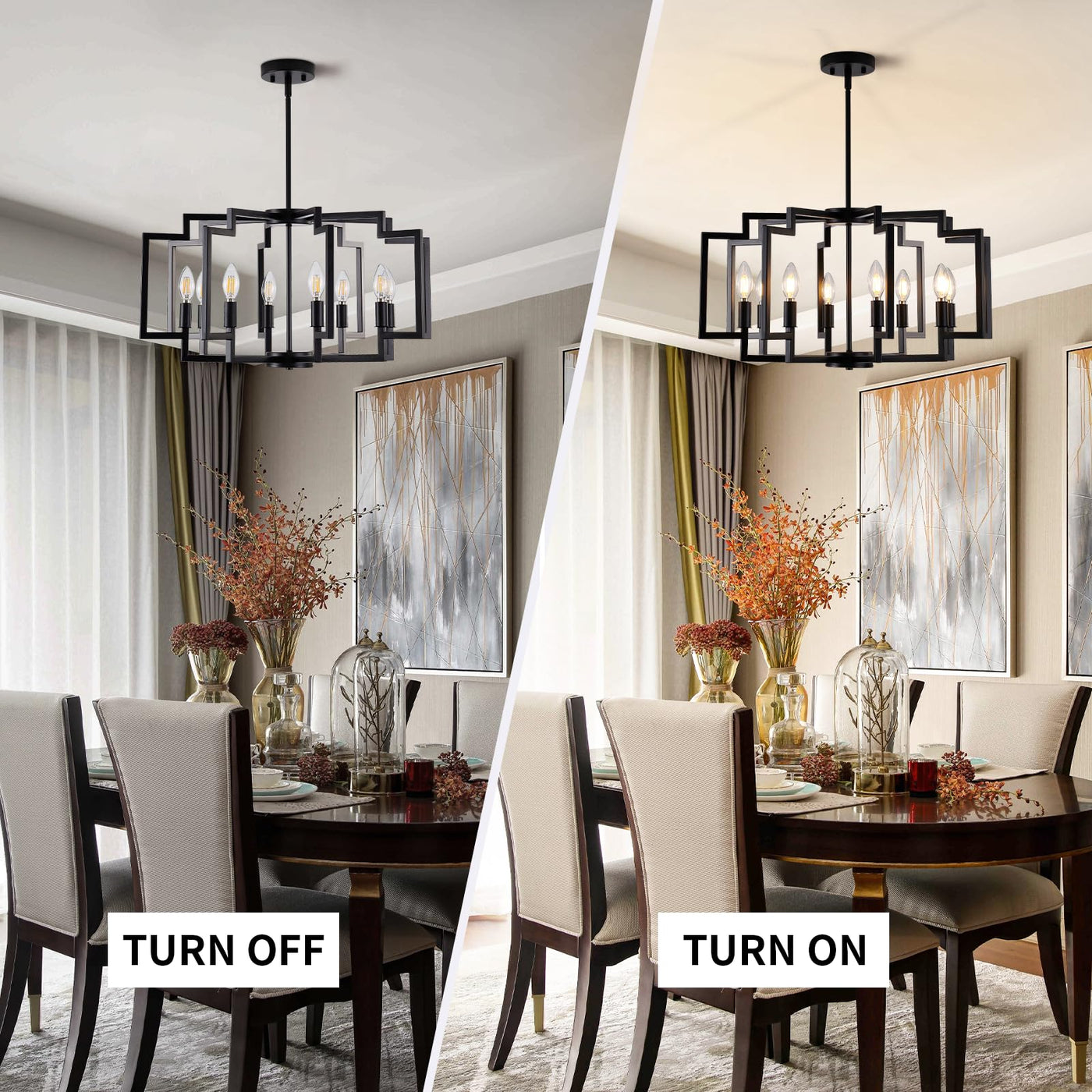 Miaybph Black Chandelier Light Fixture, 8-Light Modern Chandeliers For Dining Room Geometric Metal Modern Industrial Pendant Lig