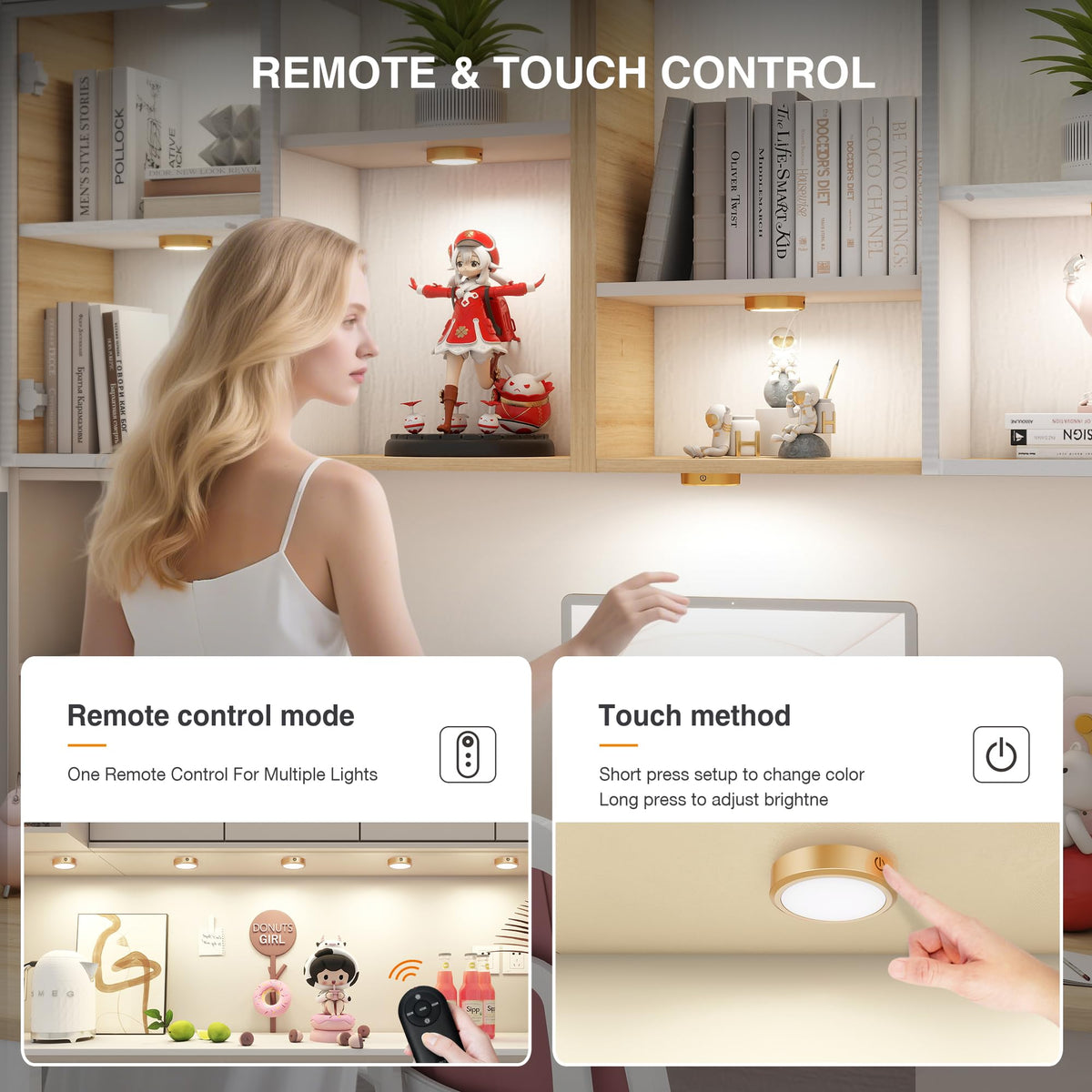 Q: What is the recommended care for these puck lights?A: To ensure optimal performance, avoid exposing the lights to excessive moisture and clean them with a dry cloth. Make sure to follow the installation tips provided to enhance the remote control sensitivity.