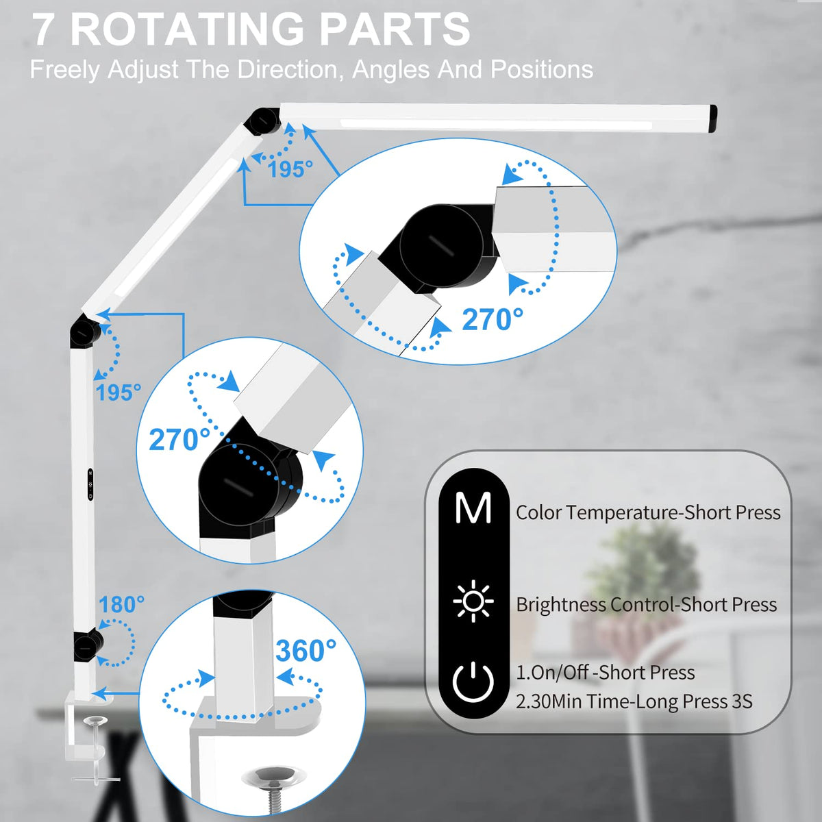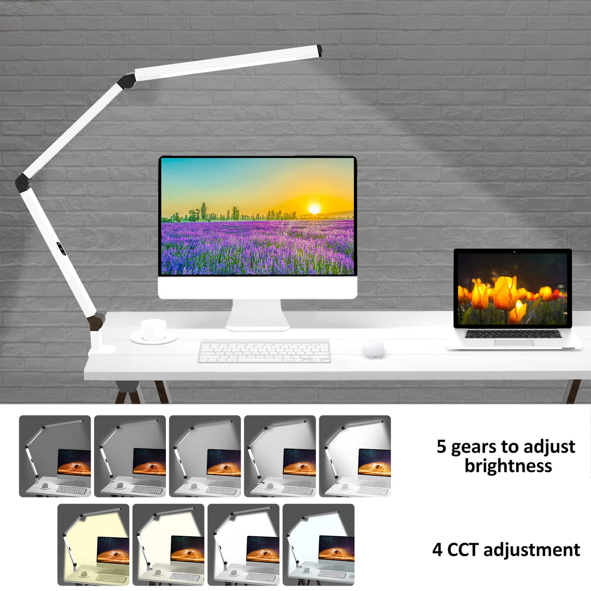 Micomlan Led Desk Lamp For Home Office, Architect Clamp Desk Lamp With Remote Control, Adjustable Dimmable Swing Arm Clamp On Table Light Clip-On Dual Light 5 Brightness Levels & 4 Cct Modes