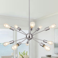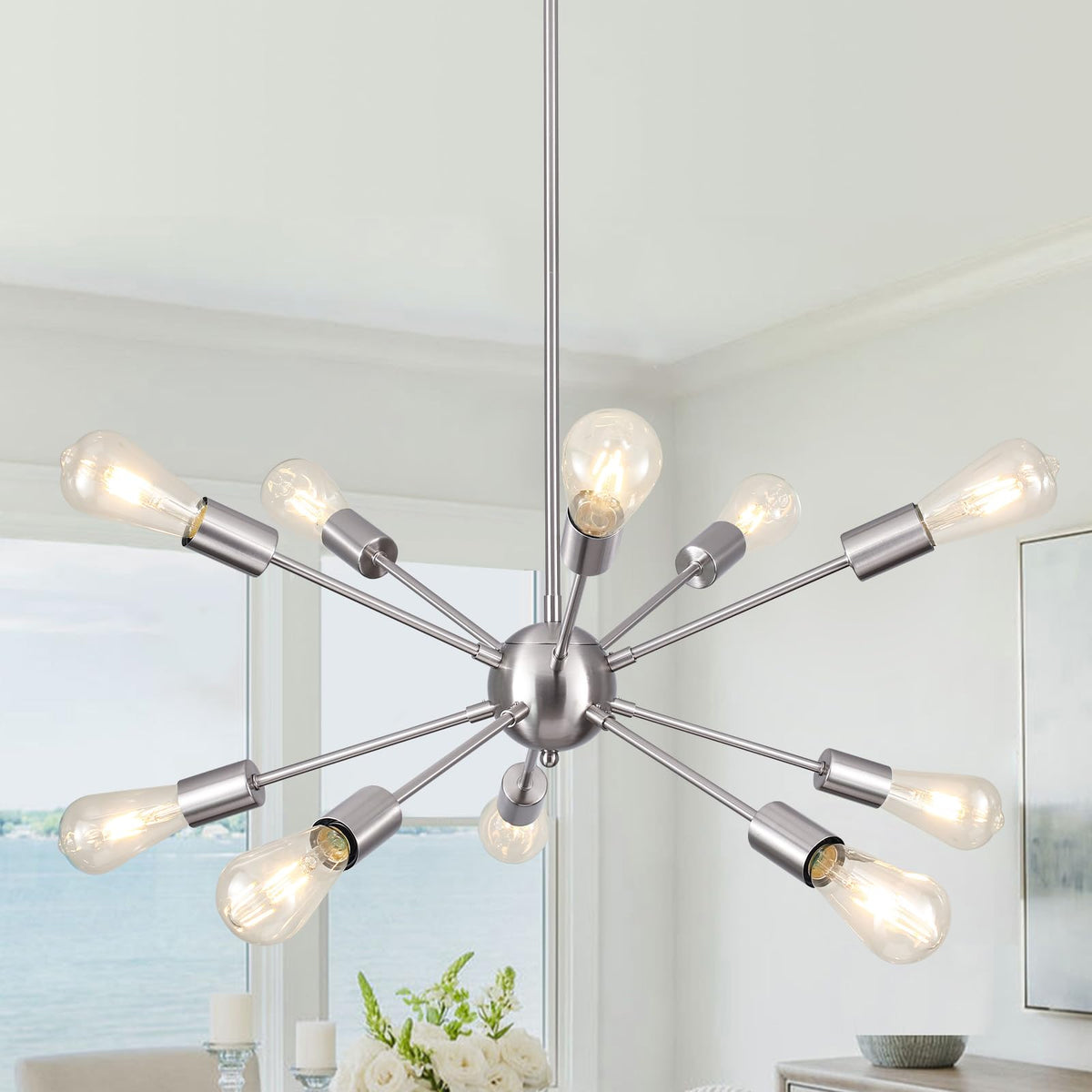 Mid Century Modern Sputnik Chandeliers,10 Lights Sputnik Ceiling Light Fixture Modern Brushed Nickel Chandeliers For Dining Room