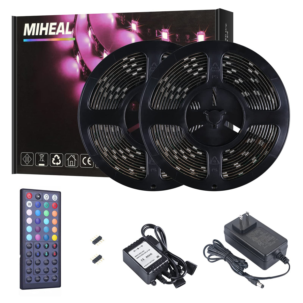 Q: How does the IR remote control work with the LED strip lights?A: The included IR remote control allows you to operate the MIHEAL LED strip lights from a distance of up to 10 meters. You can change colors, adjust brightness, and even set DIY color combinations effortlessly, enhancing your lighting experience.