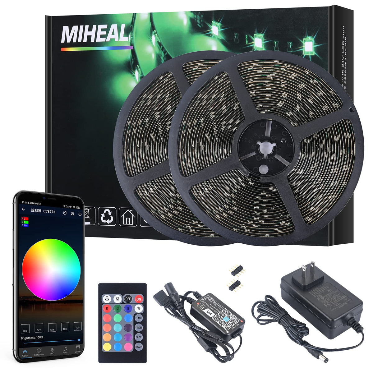 Q: What is included in the MIHEAL LED Light Strip package?A: The package includes two 10-meter LED strip lights, a WiFi signal receiver, a 24-key remote control (with battery), a US power supply, and a user manual, providing everything you need to get started with your lighting setup.