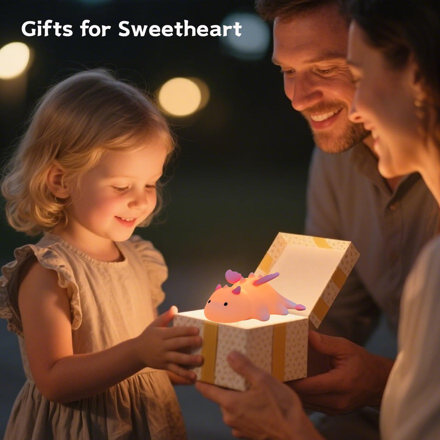 This cute and fun little milk dragon night light offers pink, blue and creamy yellow color choices in a well-behaved sprawling shape, which makes it both a table lamp, desk lamp and kawaii childrens room decoration. The magnetic night light with its own magnetic patch can be attached or placed at will. Touch dimming design provides 3 levels of warm white light + 7 RGB dazzling color modes, perfect for childrens rooms and nurseries. Made of food-grade silicone, safe for children, colorful light mode automatically turns off in 30 minutes. Can be used for 10-45 hours on a 4-hour charge, portable design is suitable for travel.Great dragongifts for boys and girls, dinosaurs lovers or home decor lovers! Features. Salamander shape 3 levels of brightness 7 types of lights Touch control design Specification. Product color:pink/creamy yellow/blue Light color:warm light + colorful light Shape: salamander Style: cartoon Material:Silicone Product Size:6.19inx 4.61in x 2.63in Product weight:0.3lbs Power supply:USB charging Suitable for use as: salamander night light, parenting light, childrens room night light, bedside night light, touch light, small table lamp, small desk lamp, salamander lover gifts Package Include. 1 x newt night light 1 x USB charging cable 1 x Manual