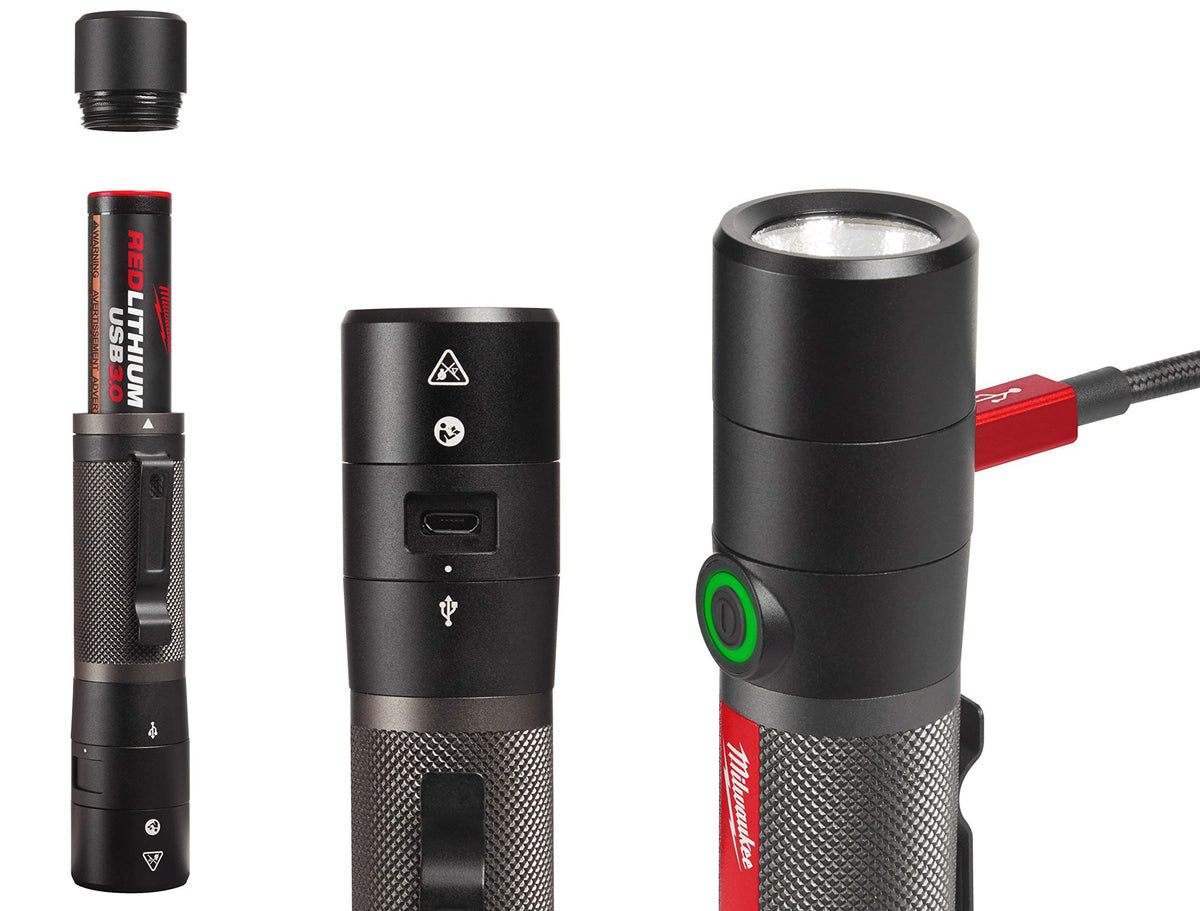 Q: Can I recharge the Milwaukee flashlight's battery, and how?A: Yes, the Milwaukee flashlight is powered by the REDLITHIUM USB 3.0AH Battery, which can be recharged directly in the flashlight via a Micro USB port, offering faster charge times and more recharges.