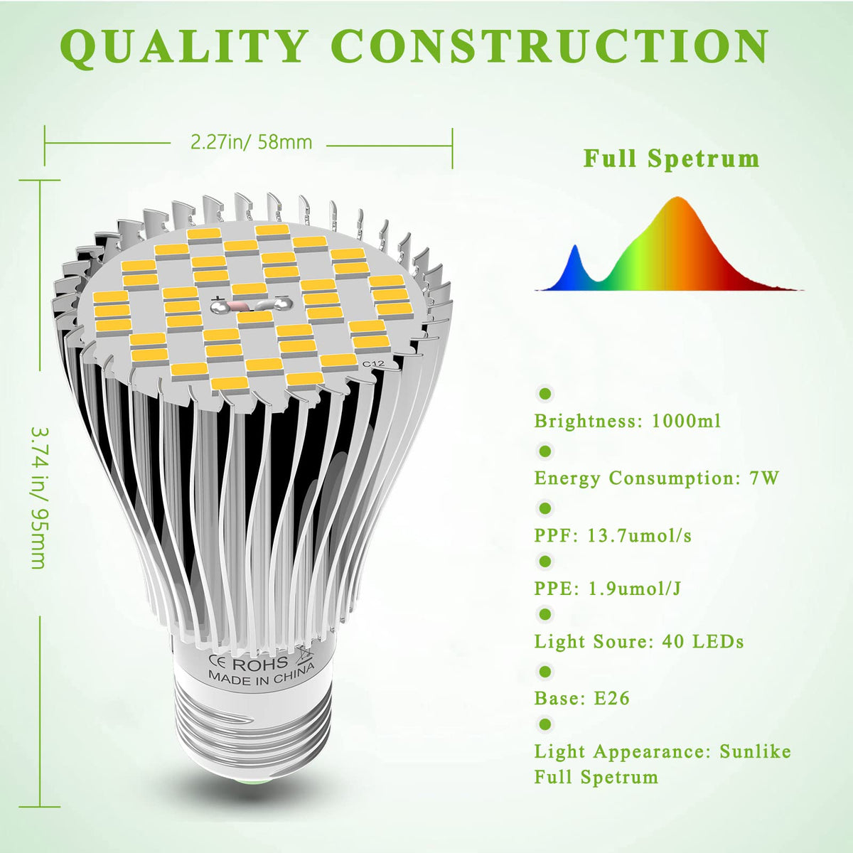 - Q: How does the heat dissipation feature enhance the performance of this grow light? A: The MILYN grow light bulb features an efficient heat dissipation design with a metal aluminum radiator shell. This helps to keep the bulb cool during operation, ensuring longevity and preventing overheating, which can be detrimental to both the bulb and the plants.