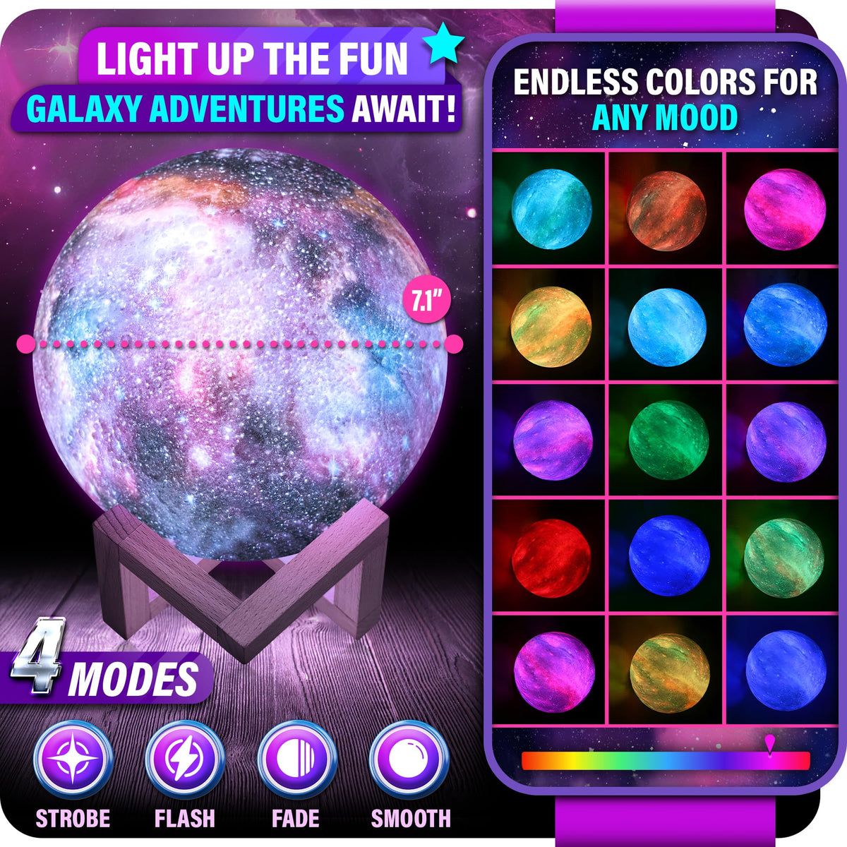 Mind-glowing 3D Galaxy Moon Lamp - 16 Colors, Touch/Remote Control, 7.1 inch, Plastic, Model GL - 003, Night Light for Kids Bedrooms