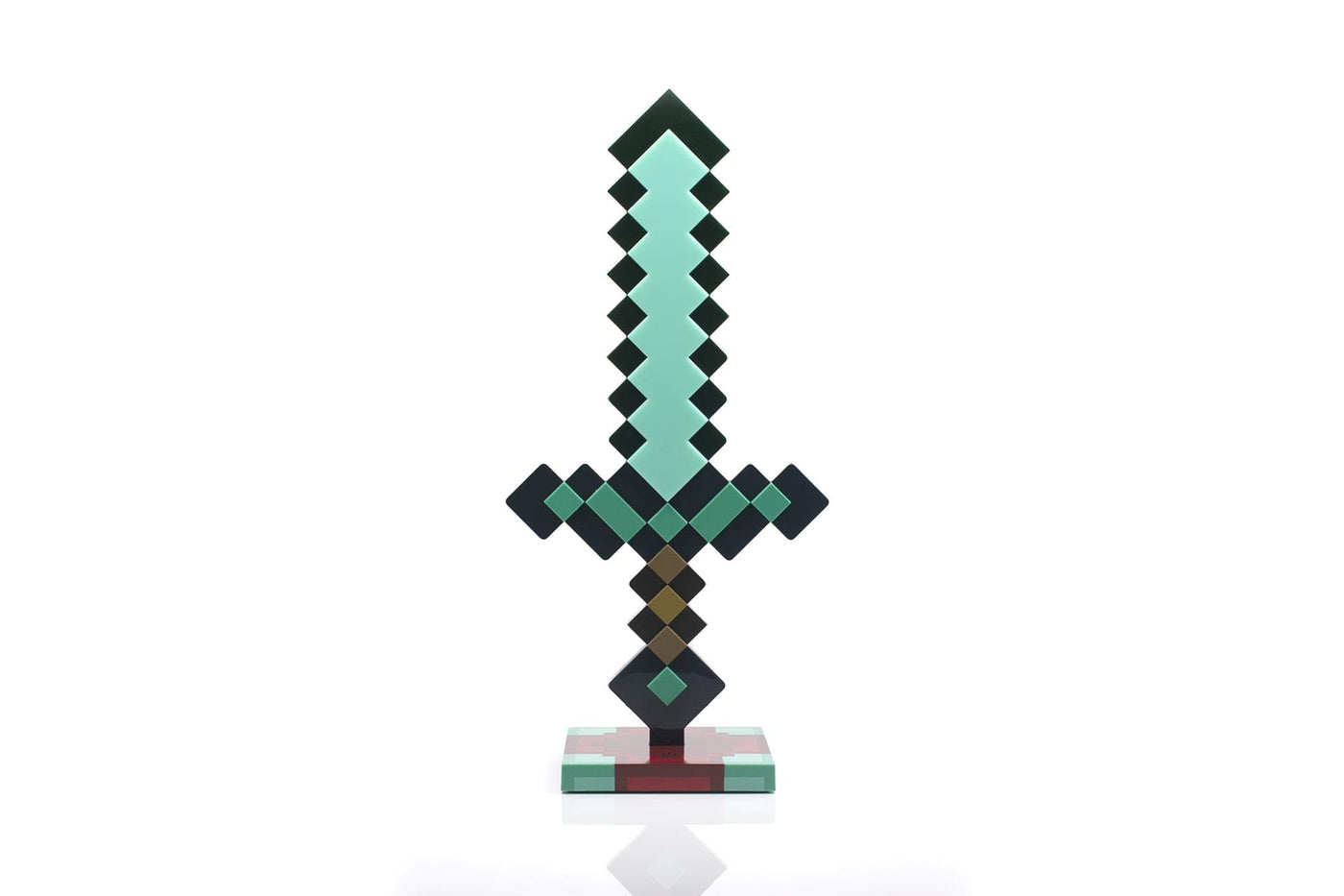 LIVE IN YOUR MINECRAFT CREATION Bring a little piece of the extraordinary land of Minecraft right into your home with this Minecraft Diamond Sword Desk Lamp. Sleep by the warm glow of this adorable lamp and dream fun adventures. Features: - Authentic game design - 15.6-Inch tall desk light - Energy-efficient LED light - Powered by USB cable (included in the package) - Charming accent piece - Diamond Sword Minecraft real look - Officially licensed Minecraft Collectible Item ORIGINAL GIFTWARE Perfect for those in the fandom looking for novelty Minecraft collectible items. Give this cool collector's item to friends, moms, dads, fans, grads, kids, guys & gals who love pop culture fun! Every Minecraft fan would love this useful and playful Diamond Sword Desk Lamp Light. So, what are you waiting for? Get your own Minecraft Diamond Sword Desk Lamp now while supplies last!