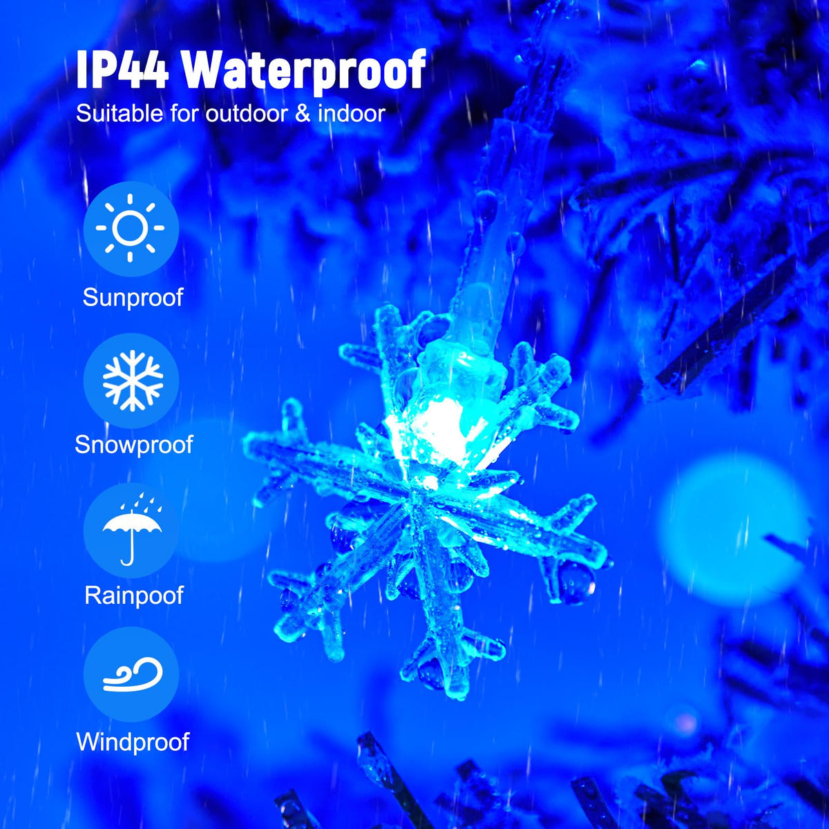 Q: Are these Christmas lights suitable for outdoor use?A: Yes, the Minetom Snowflake Lights are designed for both indoor and outdoor use. They are IP 44 waterproof, making them ideal for outdoor decorations, as they can withstand various weather conditions.