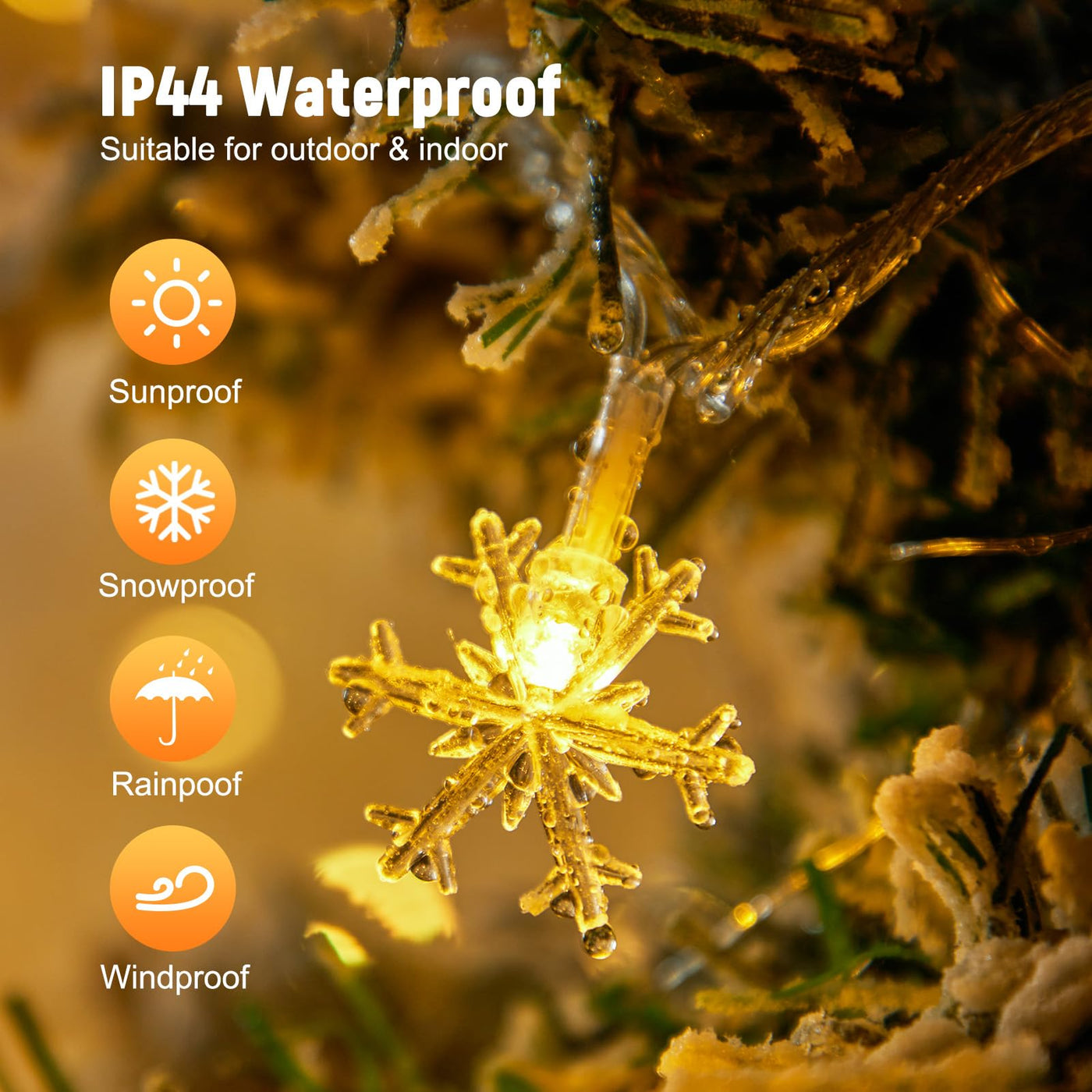 Q: Are the snowflake lights safe for indoor use?A: Absolutely! The snowflake lights are designed for both indoor and outdoor use. They are impact-resistant and shatterproof, ensuring safety and durability when used indoors, such as on Christmas trees or mantels.
