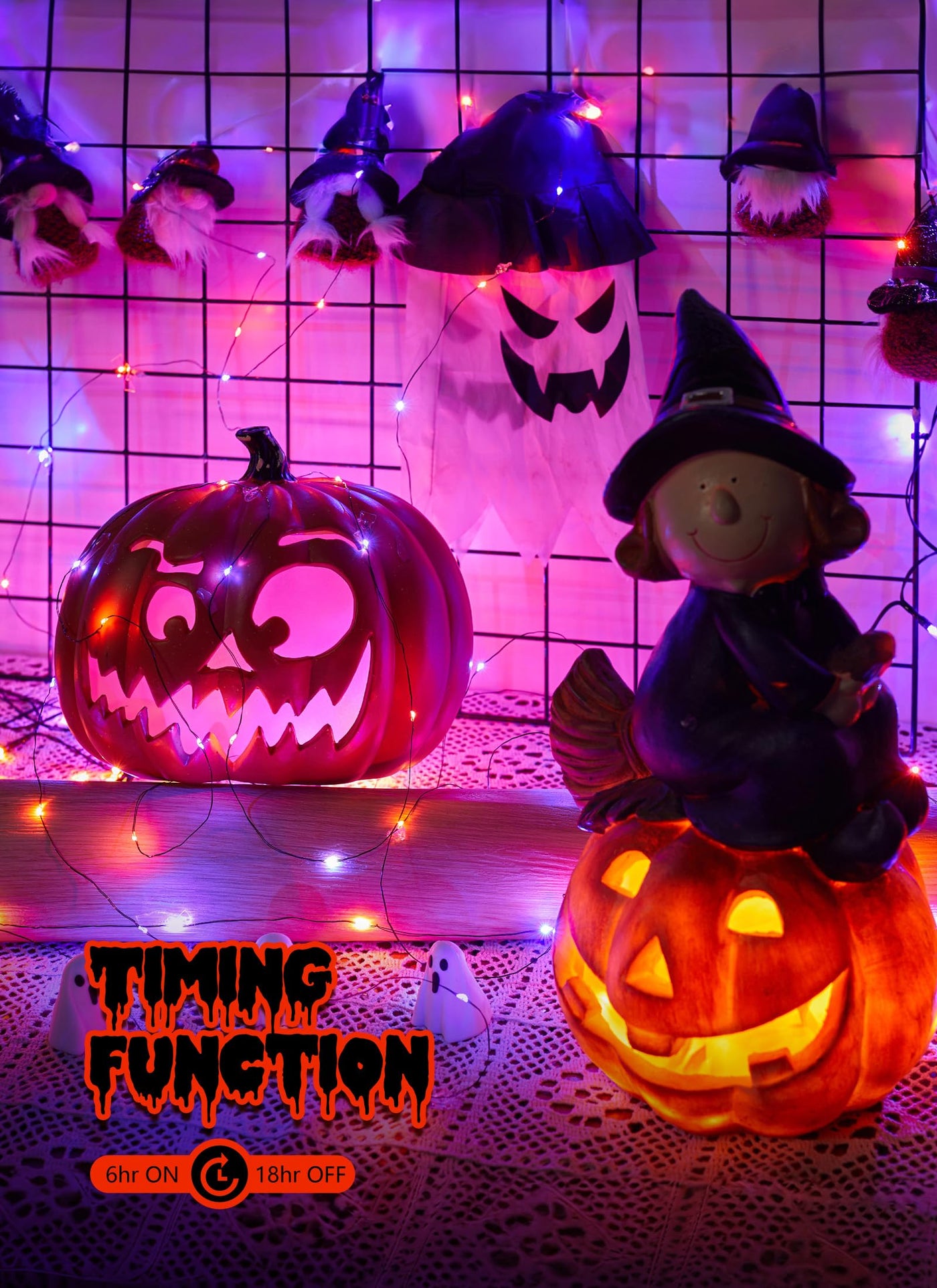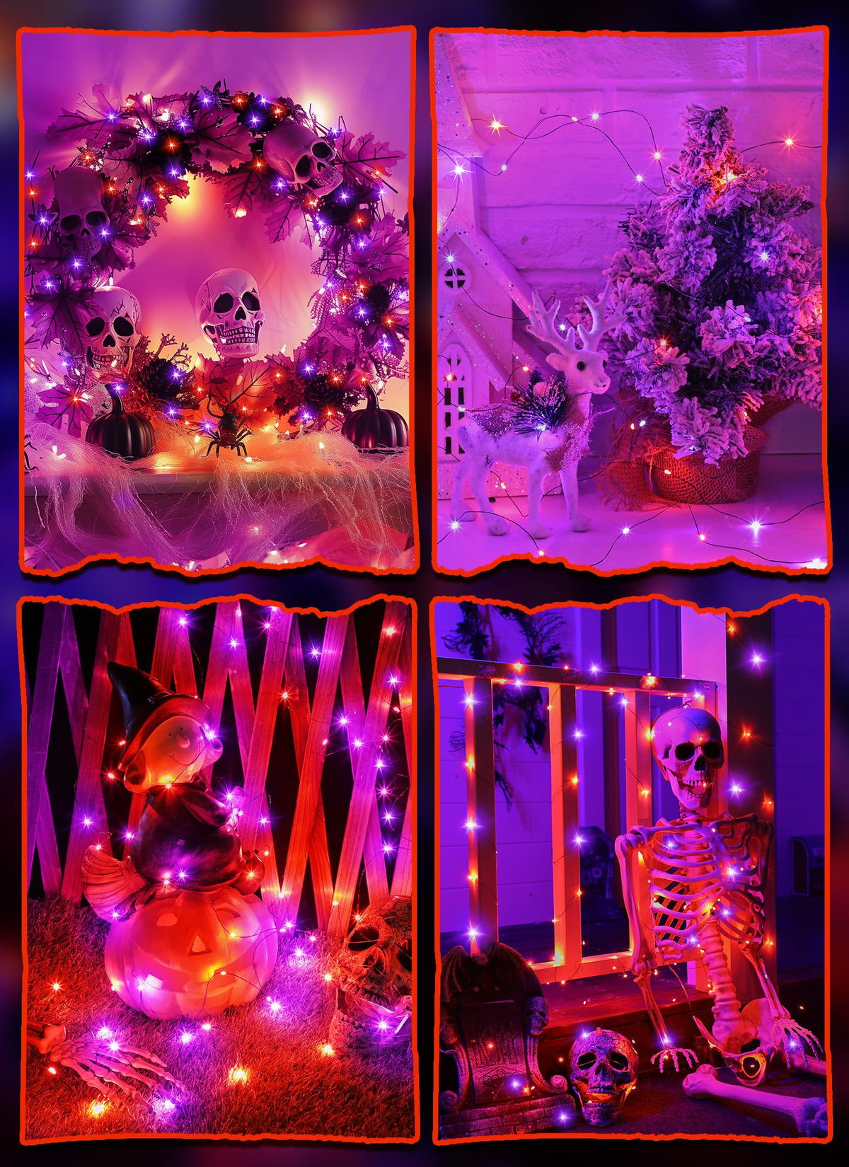 Q: What colors do the fairy lights come in?A: The 5 Pack Fairy Lights feature orange and purple colors, perfect for creating a festive Halloween atmosphere.