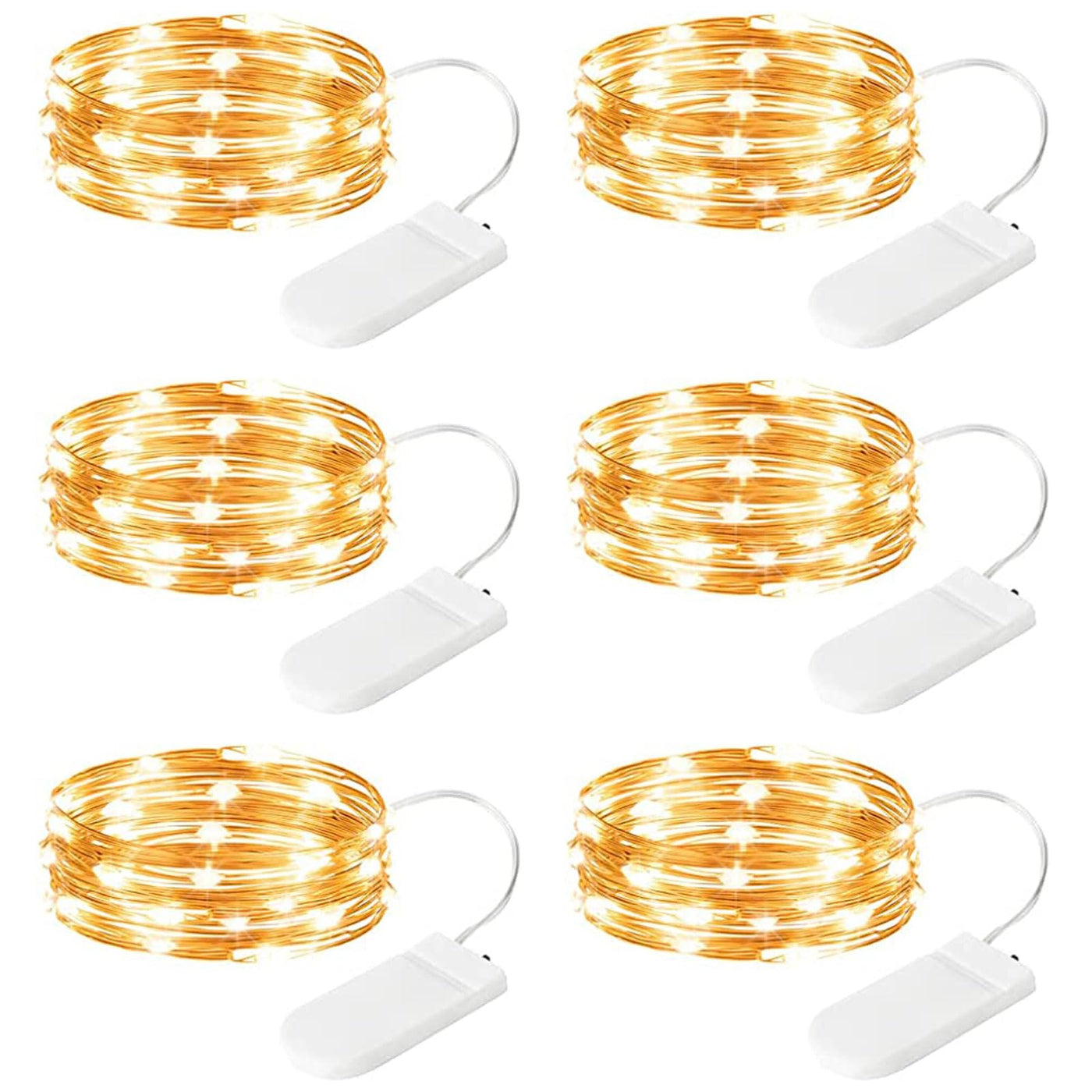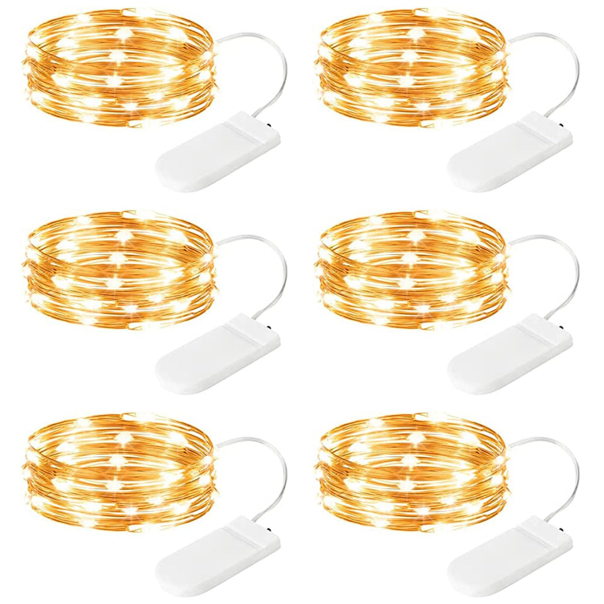 Minetom 6 Pack Fairy Lights Battery Operated - 7Ft 20 Led Waterproof Mini Silver Wire String Lights For Wedding Mason Jars Crafts Shelves Walls Christmas Garlands Party, Warm White