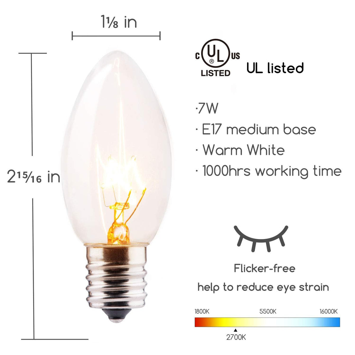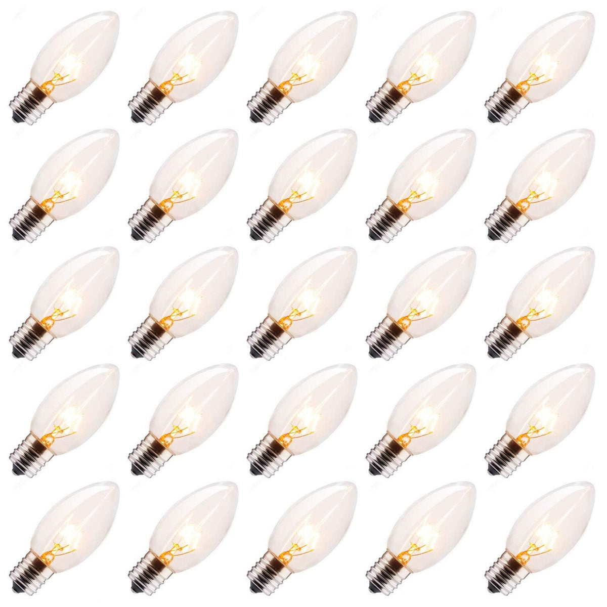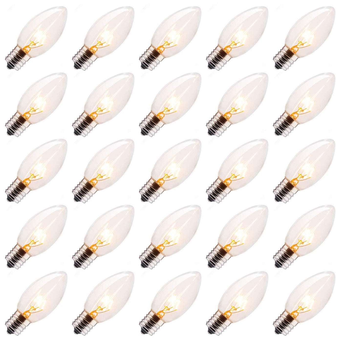 Minetom C9 Clear Replacement Bulbs for Christmas Lights, 100 Pack, E17 Intermediate Base, 7 Watt, Warm White