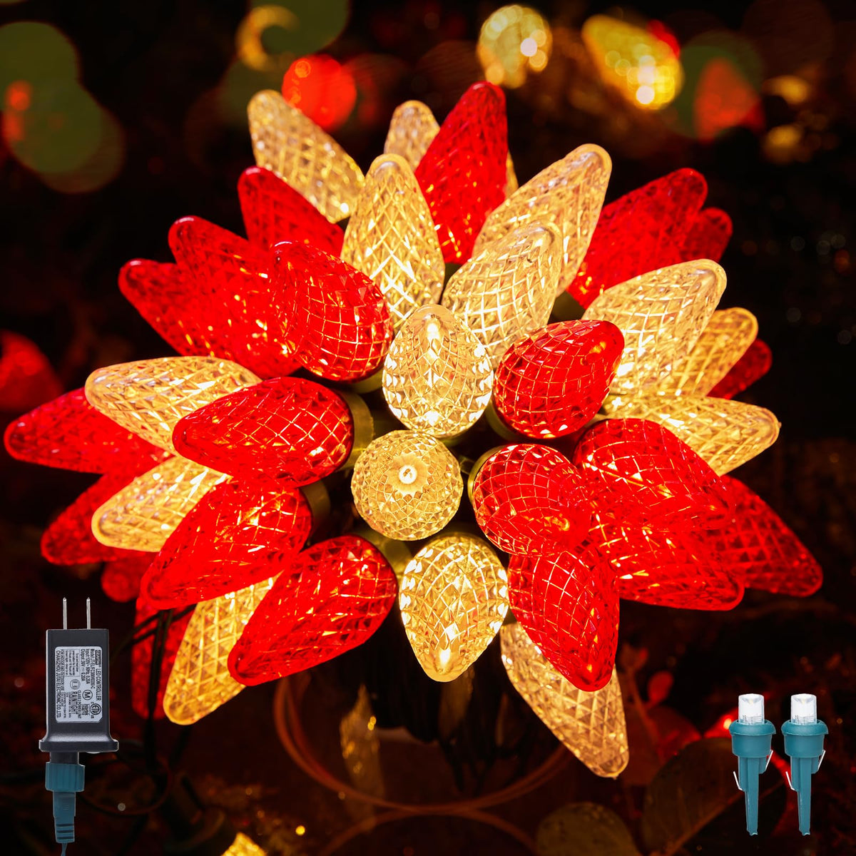 Q: Can these Christmas lights be used outdoors?A: Yes, the C9 LED Christmas Lights are designed for both indoor and outdoor use, with an IP44 waterproof rating for durability and safety in various weather conditions.