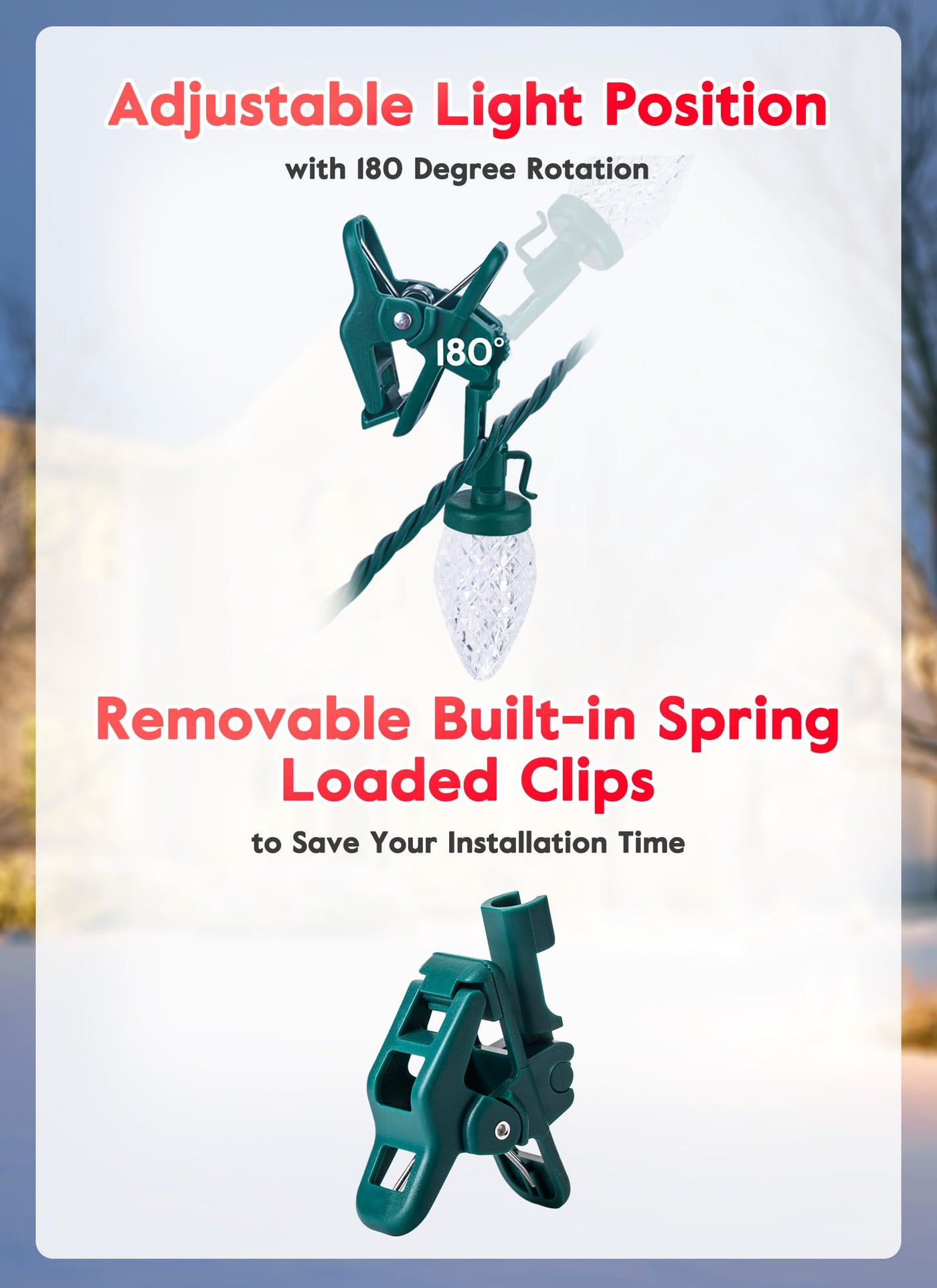 Convenient Setup: Spring-loaded clips securely fasten the lights to surfaces and can be easily removed.